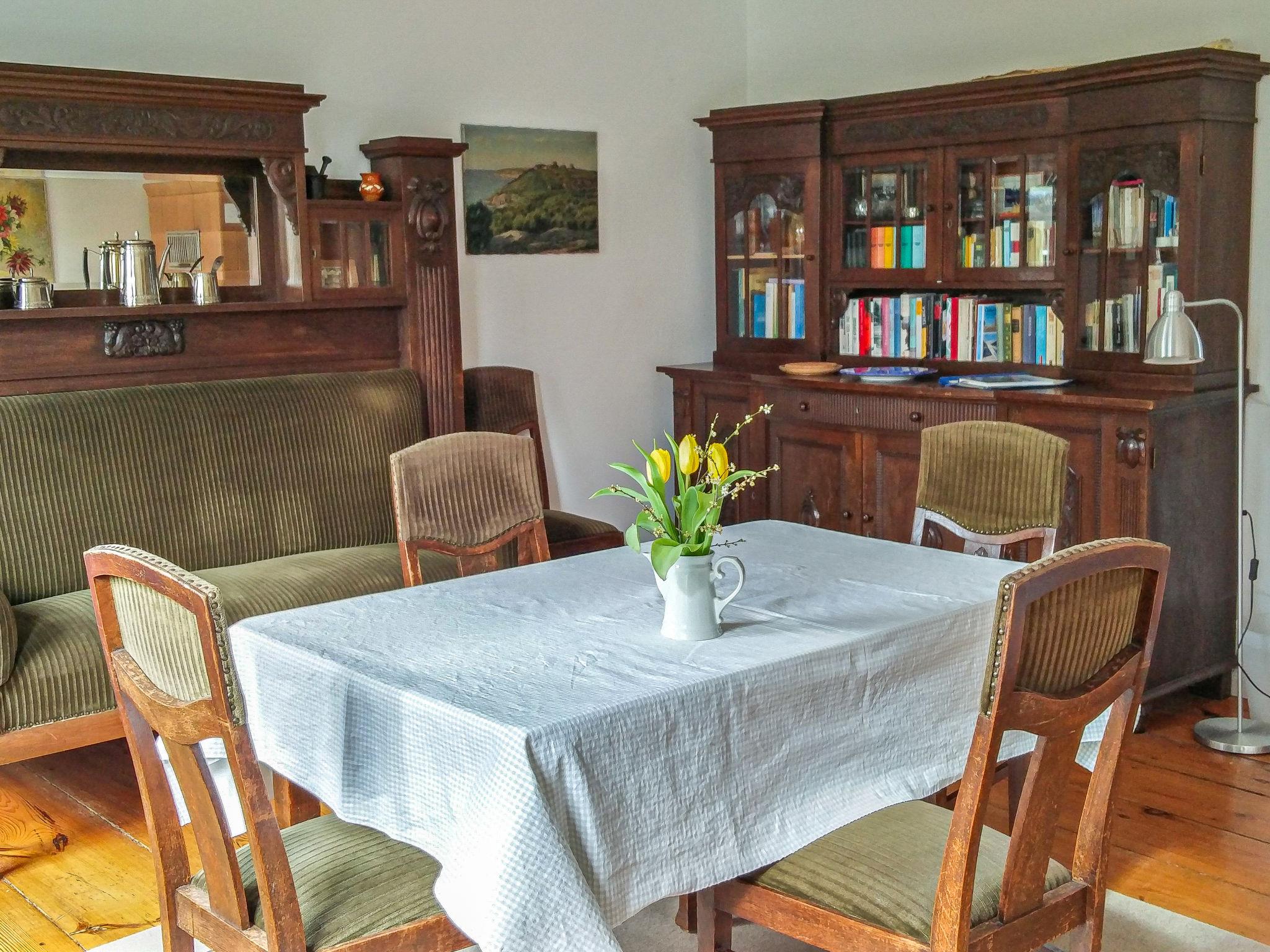 5-room semi-detached house 110 m2 on 3 levels. Tasteful and cosy furnishings: living room with satellite TV and radio. Dining room. Kitchen (oven, dishwasher, 4 ceramic glass hob hotplates, toaster, microwave, freezer, electric coffee machine). Shower/WC. Upper floor: 1 room with sloping ceilings with 1 double bed (2 x 90 cm, length 200 cm). 1 room with sloping ceilings with 2 beds. Bath/WC. Top floor: (steep stair), 1 room with sloping ceilings, ceiling height 10 - 180 cm with 1 double bed (140 cm, length 200 cm). Gas heating. Wooden floors. Terrace. Terrace furniture, barbecue (portable). Facilities: washing machine, dryer. Please note: non-smoking house. Smoke alarm. Bookings accepted for holiday purposes only.