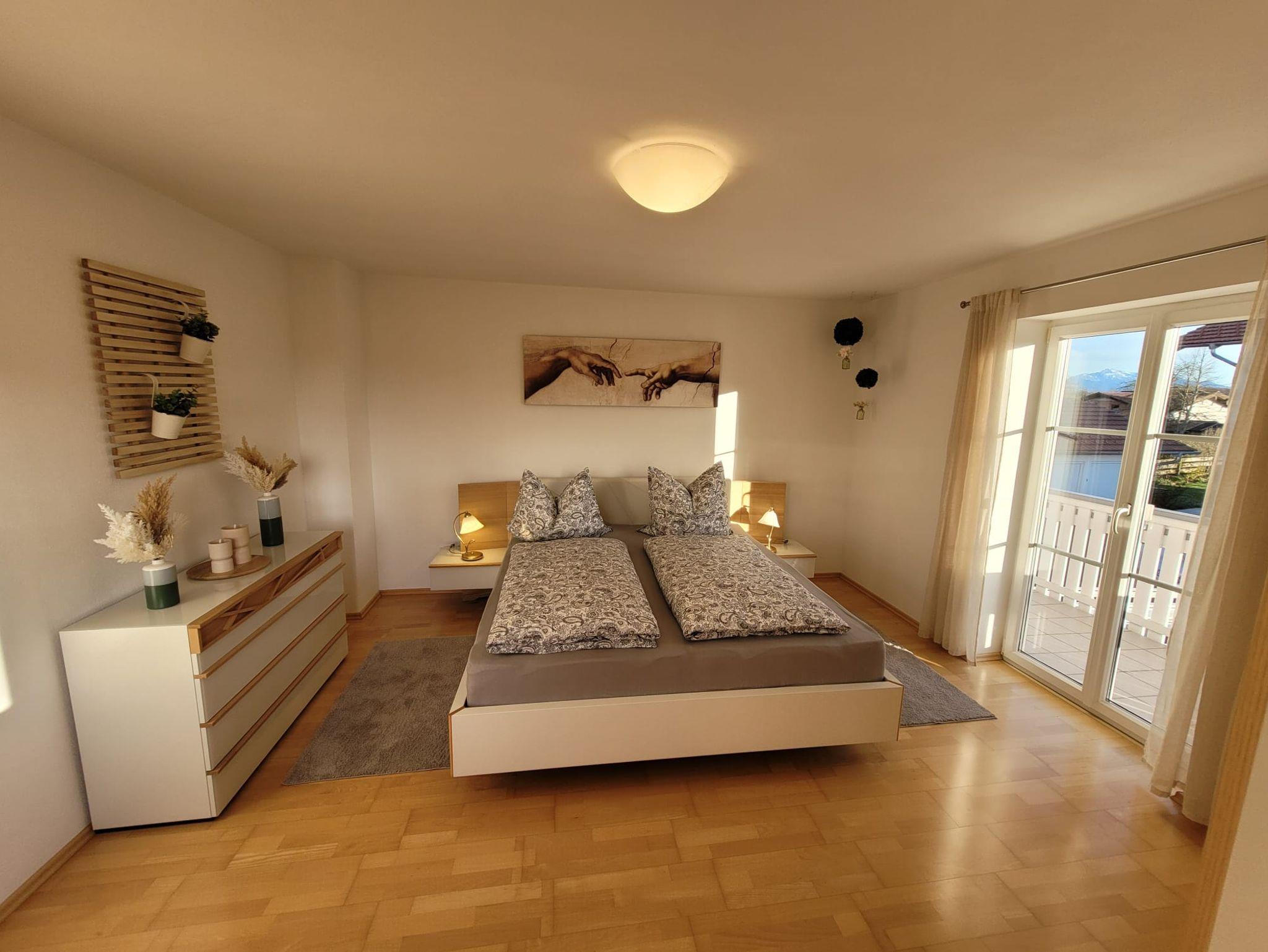 Unsere Ferienwohnung befindet sich in einer eigenständigen Doppelhaushälfte und bietet Ihnen eine moderne, großzügige und liebevoll gestaltete Unterkunft, die keine Wünsche offenlässt. Mit viel Liebe zum Detail haben wir ein Wohlfühlambiente geschaffen, das bayerische Gemütlichkeit mit modernem Komfort verbindet – ideal für entspannte Urlaubstage im Chiemgau.