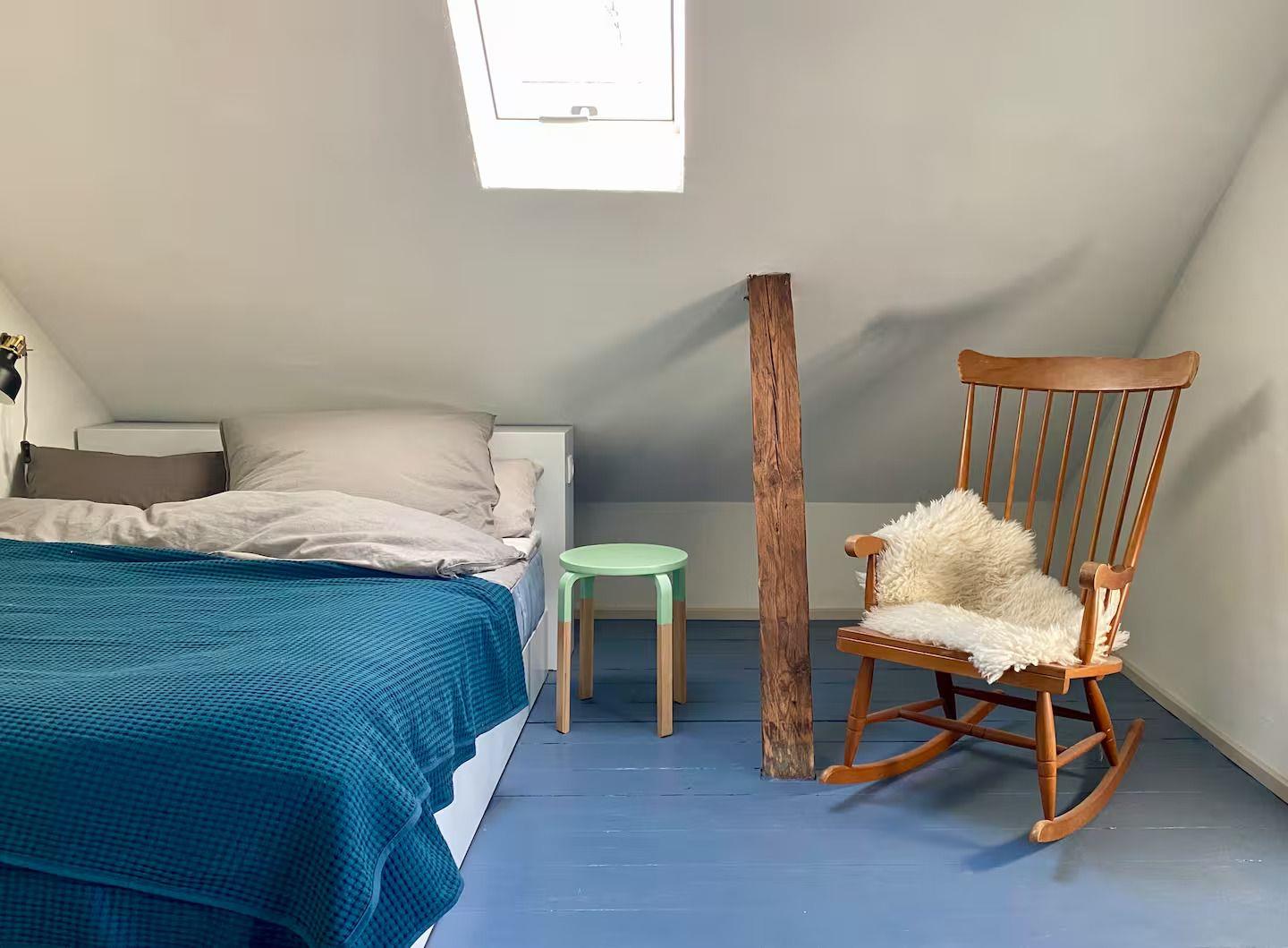 Das Ferienhaus bietet Platz für bis zu sieben Personen und erstreckt sich über vier Zimmer, darunter zwei Schlafzimmer. In einem der Schlafzimmer erwartet Sie ein gemütliches Doppelbett, während das andere mit zwei komfortablen Einzelbetten ausgestattet ist. Das Zusammenspiel von rustikalem Charme und modernem Komfort setzt sich in der gut ausgestatteten Küche fort. Hier finden Sie nicht nur einen Kühlschrank mit Eiswürfelspender, sondern auch einen hochmodernen Induktionsherd sowie eine Espressomaschine. Ein gemütlicher Esstisch vor der Küche lädt zu gemeinsamen Mahlzeiten ein.