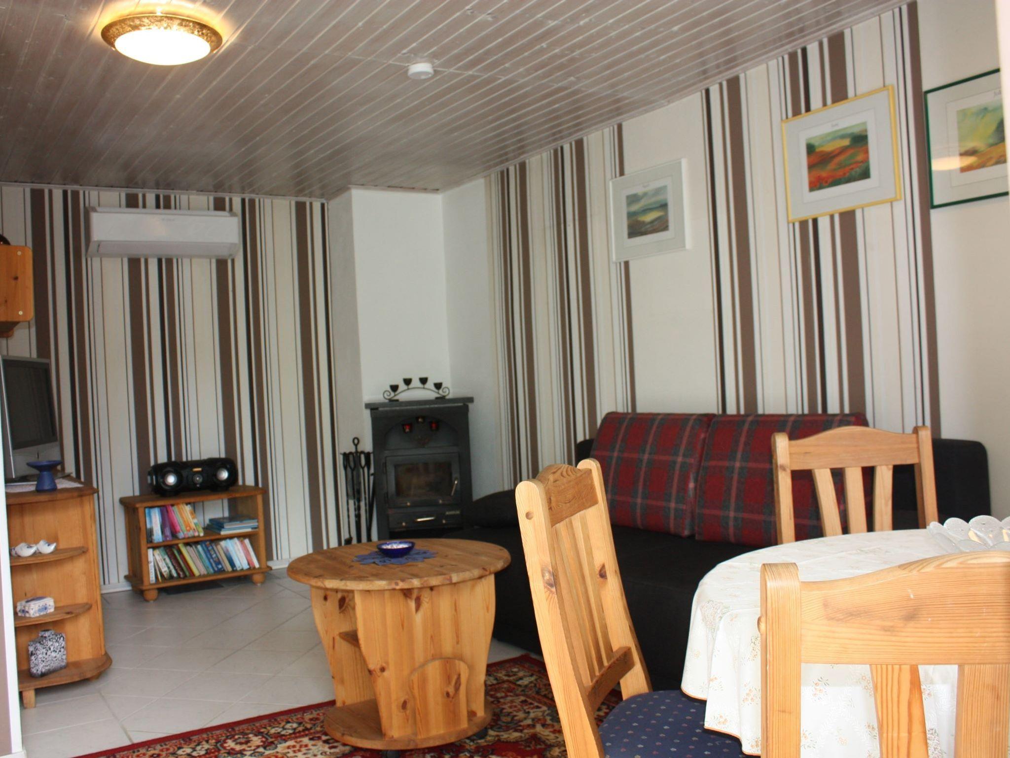 Das Ferienhaus ist 52 m² groß. Es gibt 1 Wohnraum, 1 Schlafraum mit Doppelbett, eine Küche, Dusche und WC. Weierhin gehören zum Ferienhaus eine Terrasse mit Gartenmöbeln und Grill sowie ein Kamin.