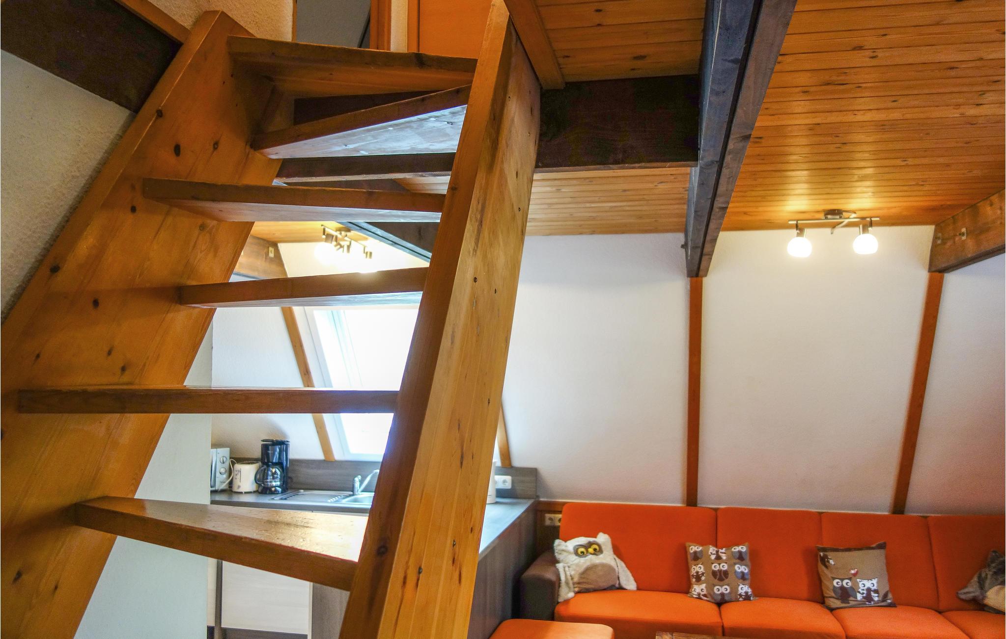 Det attraktive Nurdachhaus giver jer den perfekte ramme om en ferie i Sauerland. Den charmerende bolig har en charmerende indretning med varme farver og træelementer, så her kommer I hurtigt til at føle jer hjemme. Efter en lang, aktiv dag kan I læne jer tilbage i badekarret eller sætte jer til rette i hjørnesofaen med en god bog.