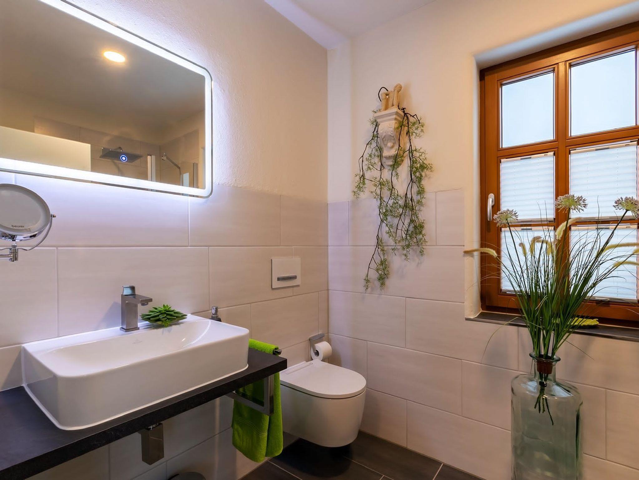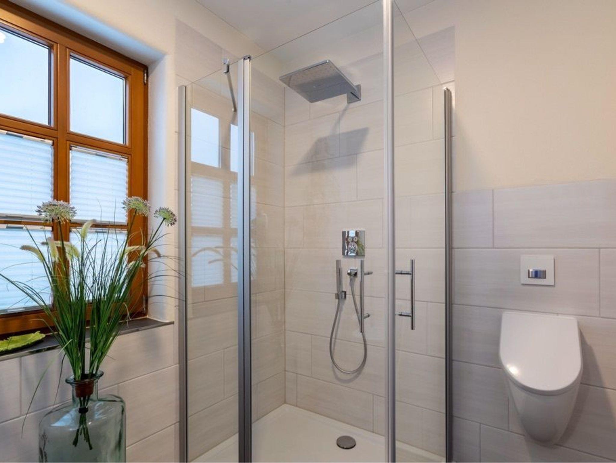 Weiter geht’s: Selbst das Badezimmer ist als ein Ort der Ruhe und Entspannung konzipiert worden. Hier können Sie zum Beispiel zu Ihrer Lieblingsmusik unter der Regendusche alle Sorgen vergessen und perfekt entspannen.
