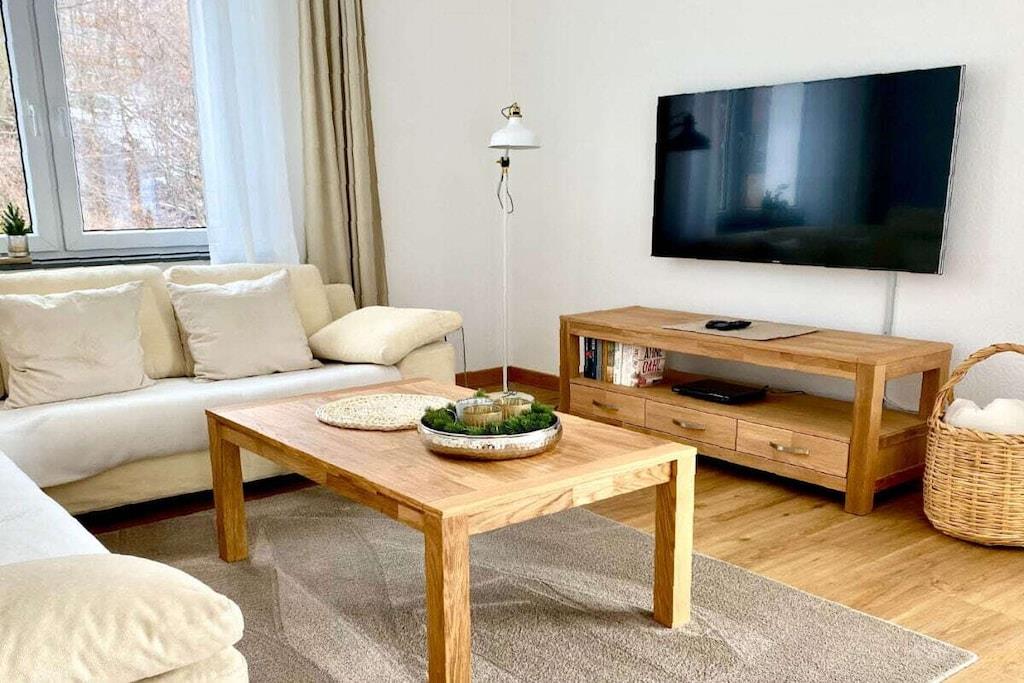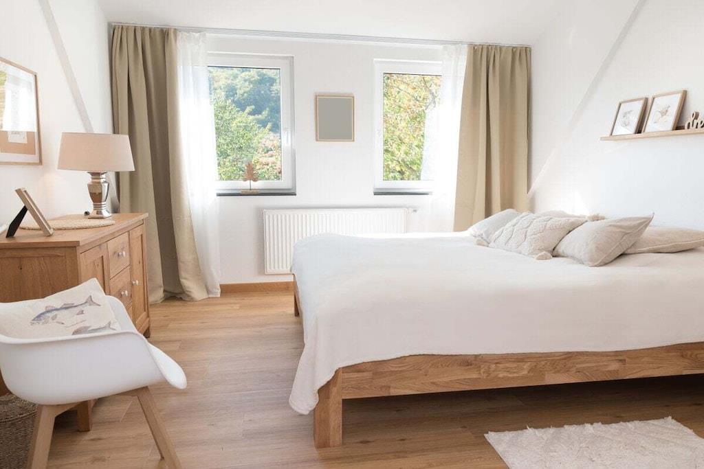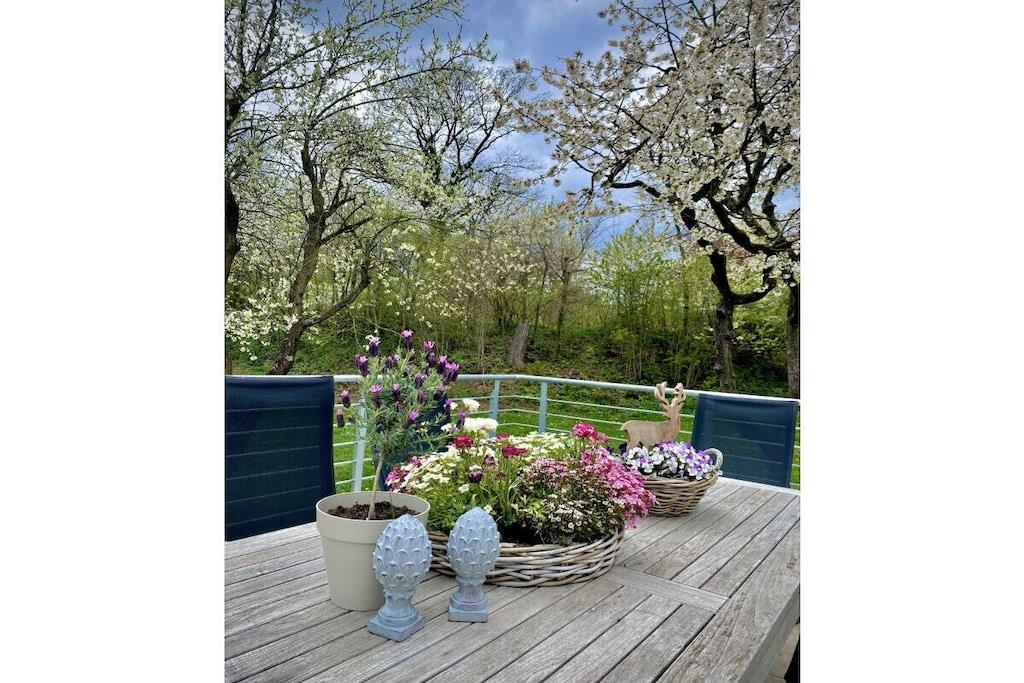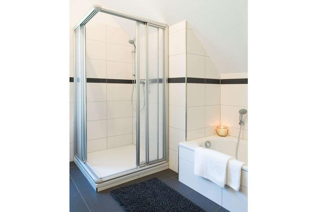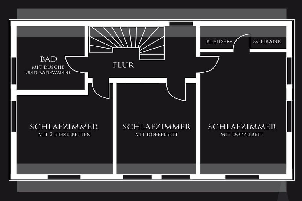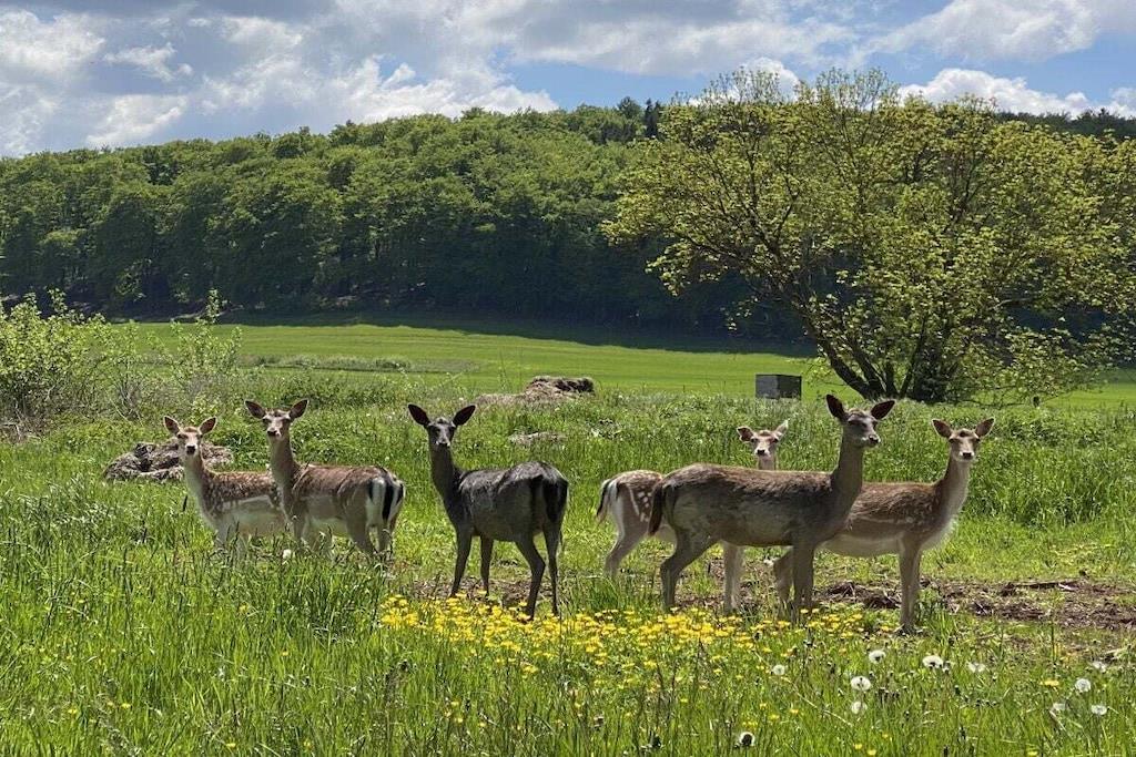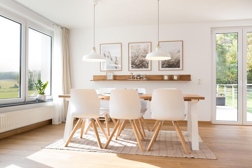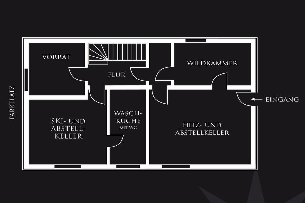 Das Ferienhaus verfügt über zwei Wohnetagen und ein Kellergeschoss mit ebenerdigen Eingang. Alles für den täglichen Bedarf ist vorhanden: Bettwäsche, Handtücher, sowie eine komplett eingerichtete Küche. Erdgeschoss: Großer offener Wohnraum mit offener voll ausgestatteter Küche, Essplatz mit 6 oder 8 Sitzplätzen, Wohnzimmer mit bequemen Sofa und Sessel, Flachbildschirm-Fernseher mit WLAN-Anschluss, Sat-TV und DVD-Player. Ein Schlafzimmer mit Doppelbett, Badezimmer mit Dusche, Abstellraum mit Staubsauger und Vorräten. Moderner Schwedenofen inkl. für Sie kostenlosem Brennholz. Obergeschoss: Drei Schlafzimmer, zwei davon mit je einem Doppelbett und ein Schlafzimmer mit zwei Einzelbetten, die auf Wunsch als Doppelbett zusammengestellt werden können. Familienbad mit Dusche und Badewanne. Kellergeschoss: Ein Abstellraum z.B. für Ihre E- Bikes . Für Jagdgäste gibt es eine Wildkammer & einen Waffentresor. In der Waschküche gibt es eine dritte Toilette ein Handwaschbecken sowie eine Miele Waschmaschine und einen Miele Wäschetrockner. Kleinkinder: Babybett mit Komfortmatratze, Bettwäsche, Wickelauflage, Kinderstuhl, Windeleimer, Babygeschirr- und Besteck, Nachtlicht und Babyphone. Aussenanlage: 25 m² große Terrasse, hochwertige Sitzgruppe mit Polstern, Sonnenschirme, professioneller Edelstahl-Holzkohlegrill, Garten, Streuobstwiese. Stellplätze für vier Autos.