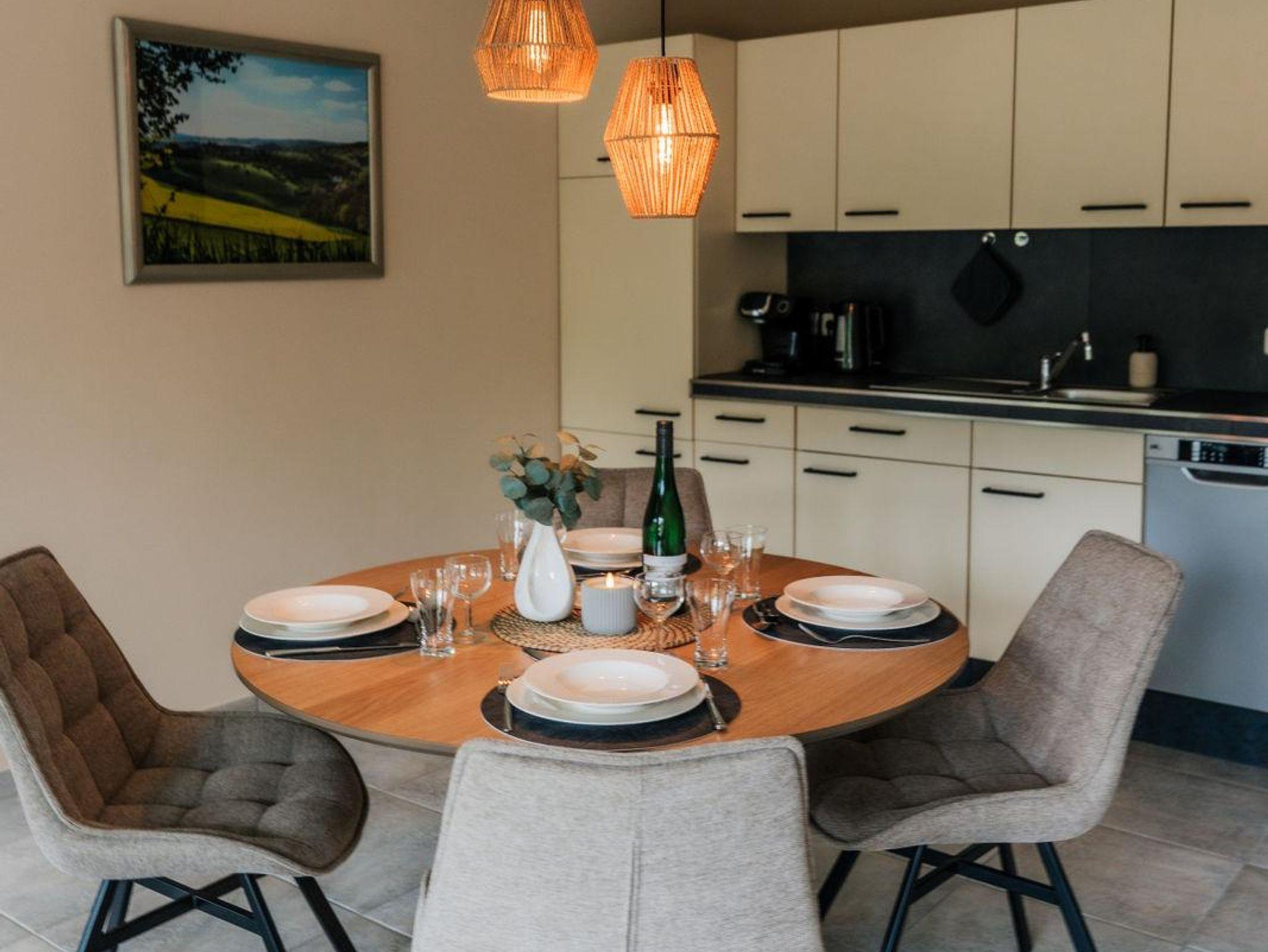 Die Wohnung mit seperatem Eingang verfügt über zwei komfortable Schlafzimmer, einen großzügigen Wohn- und Essbereich mit viel Platz zum Entspannen und Beisammensein sowie ein modernes Duschbad. Auf der sonnigen, überdachten Terrasse können Sie den Tag bei einem Frühstück im Freien beginnen oder einem Glas Wein am Abend ausklingen lassen.