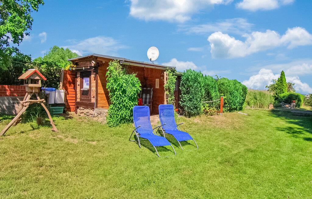 De otte feriehuse ligger på en 2500 kvadratmeter stor natur-/vandejendom direkte ved Szczecin-lagunen. Hvert sommerhus er individuelt og separat. En sti fører fra ejendommen direkte til stranden (ca. 50 m). Alle feriehuse har en møbleret terrasse eller et udendørs opholdsområde med grill og en parkeringsplads direkte ved bungalowen. Ferieboligen er udstyret med: stue (polstrede møbler inkl. sovesofa, TV), soveværelse (2 senge), tekøkken (elkomfur, køleskab, diverse køkkenmaskiner), bad/WC, el-varme. En robåd, en tømmerflåde og en overdækket terrasse lige ved vandet med grill, rygeområde og bålplads står til fri afbenyttelse. Guidede motorbådsture er mulige efter aftale. Den samlede pris inkluderer: slutrengøring, sengelinned, håndklæder, vand og energiforbrug. Betales på stedet: turistskat. En lille hund på op til 40 cm er tilladt i denne ejendom i månederne juli-august. Uden for denne tid er større hunde også tilladt. Bellin, et distrikt i havnebyen Ueckermünde, er et lille feriested i et skovområde direkte ved Szczecin-lagunen. Butikker, restauranter og to strande er i byen. Der er cirka 5 km til Ueckermünde med dens zoologiske have og havn. Herfra er udflugter med passagerskib til Polen og øen Usedom mulige.
