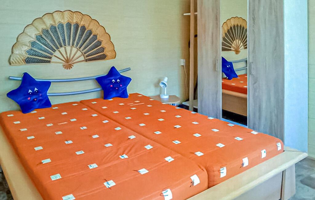 Denne enkle bungalow ligger på en separat, indhegnet grund i en stor ferielandsby lige ud til skov og kun 150 m fra stranden. Den har en stue (sovesofa, TV, radio), et soveværelse (dobbeltseng), et tekøkken med mikrobølgeovn, bruser/toilet og elektrisk varme. Der er også en møbleret terrasse, liggestole, en hundegård og en parkeringsplads. Der er en legeplads på stranden. Den samlede pris inkluderer: slutrengøring, vand og energiforbrug. Sengelinned og håndklæder kan medbringes eller lejes.
