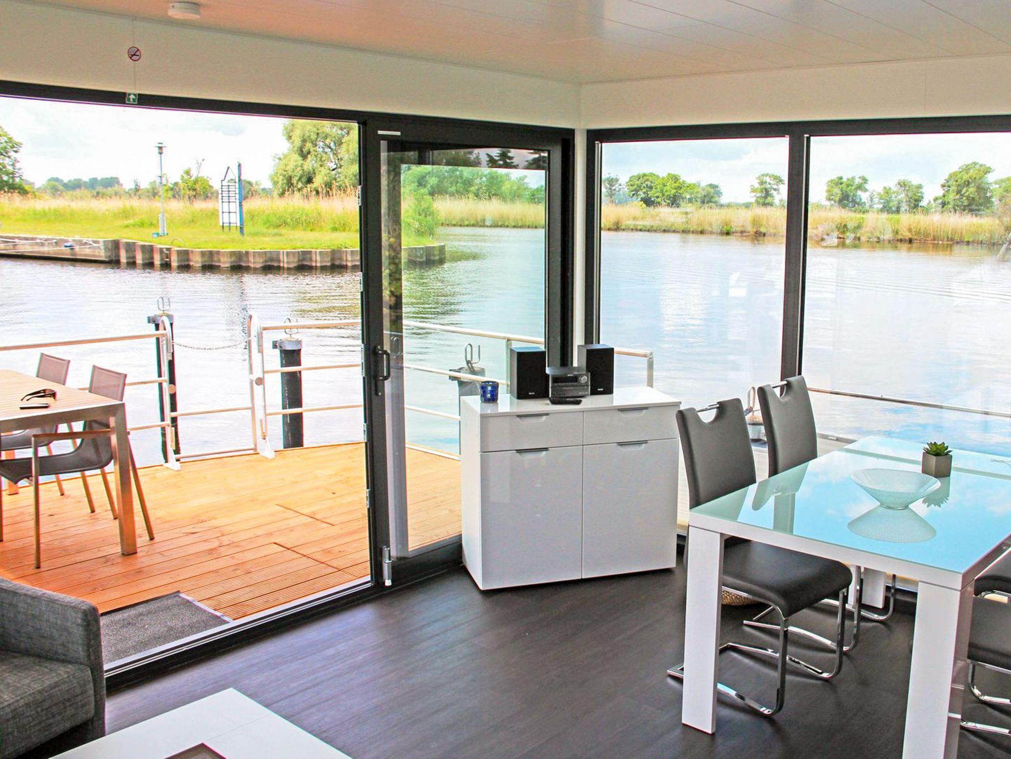 Floating House Undine erwartet dich im Seebad Ueckermünde ? fest verankert am Rande der Marina, ganz nah am feinsandigen Strand und umgeben von Natur, Wasser und Ruhe. Das modern eingerichtete Hausboot bietet Platz für bis zu 4 Personen und verfügt über zwei separate Schlafzimmer mit Doppelbetten (160x200) ? perfekt für Paare, Freunde oder kleine Familien. Auf rund 44m² Wohnfläche findest du alles, was du für entspannte Tage auf dem Wasser brauchst. Der lichtdurchflutete Wohnbereich ist offen gestaltet und verbindet die gemütliche Sitzecke mit dem Esstisch und der voll ausgestatteten Küchenzeile. Mikrowelle, Spülmaschine, Ceran-Kochfeld, Kühlschrank, Kaffeemaschine, Toaster, Wasserkocher ? alles ist da, um dich rundum zu versorgen. Das Badezimmer mit Dusche und das separate WC mit Waschtisch sorgen für zusätzlichen Komfort. Draußen erwarten dich gleich zwei ganz besondere Plätze: eine 15m² große Terrasse am Bug und das 25m² große Sonnendeck auf dem Dach ? dein privates Plätzchen für Morgenkaffee, Sonnenstunden oder den Blick aufs Wasser, wenn die Dämmerung einsetzt. Für Unterhaltung an Bord sorgen ein Sat-TV auf Flatscreen, DVD-Player, Radio und CD-Player. Das gesamte Hausboot ist mit einer Klimaanlage mit Warmluftfunktion ausgestattet, sodass du es dir zu jeder Tageszeit gemütlich machen kannst. Ein kleiner, gut erzogener Hund darf mit an Bord. Dein Auto parkst du ganz bequem direkt am Hafen. Das Floating House Undine ist von Frühjahr bis Herbst buchbar, jeweils in der frostfreien Zeit.