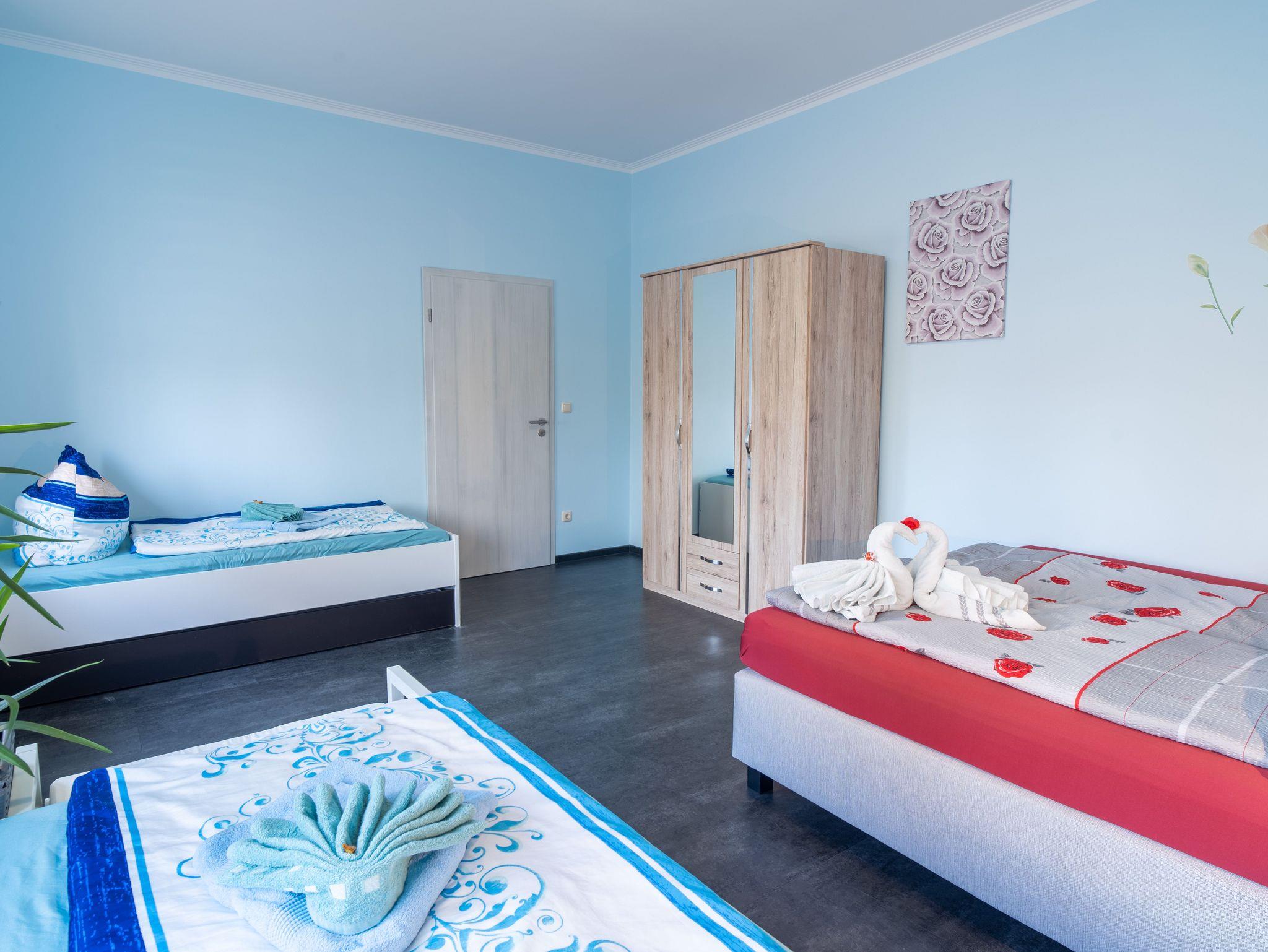 Die Wohnung verfügt über 1 Schlafzimmer mit einem Doppelbett und 1 Schlafzimmer mit bis zu 4 Einzelbetten.