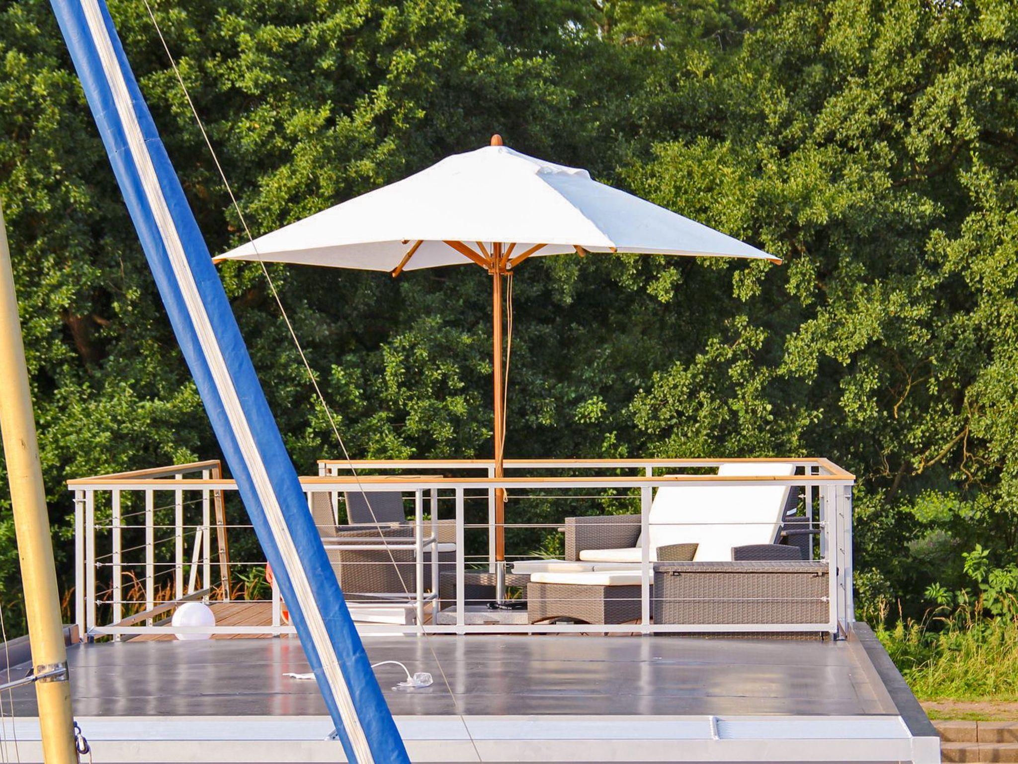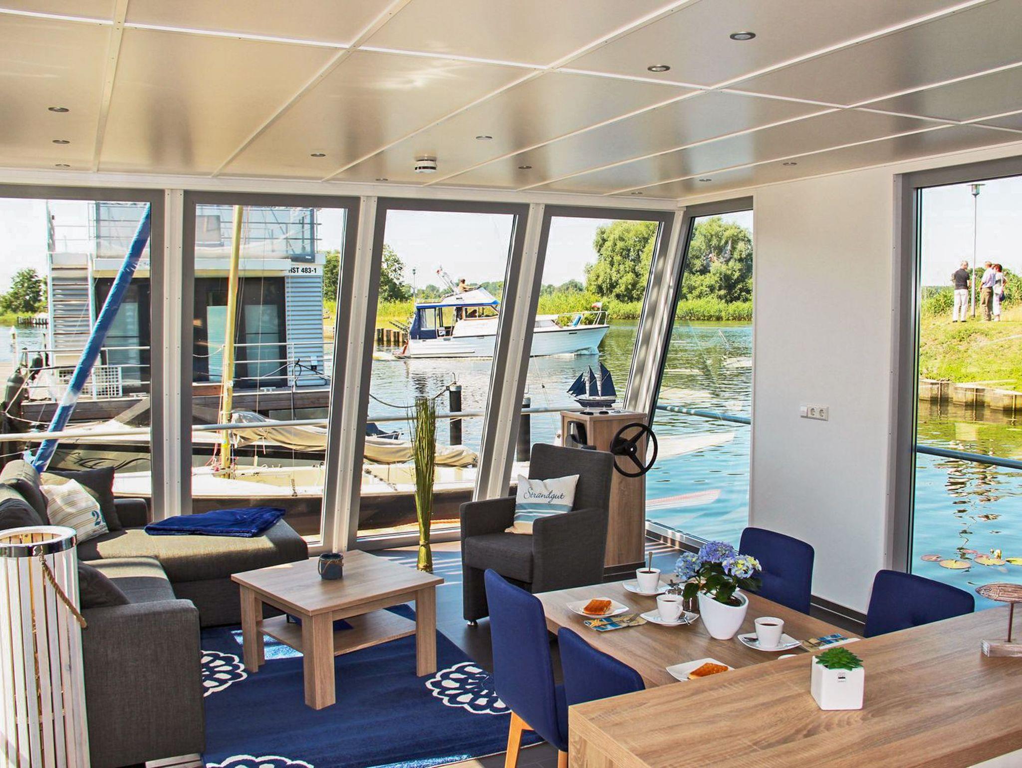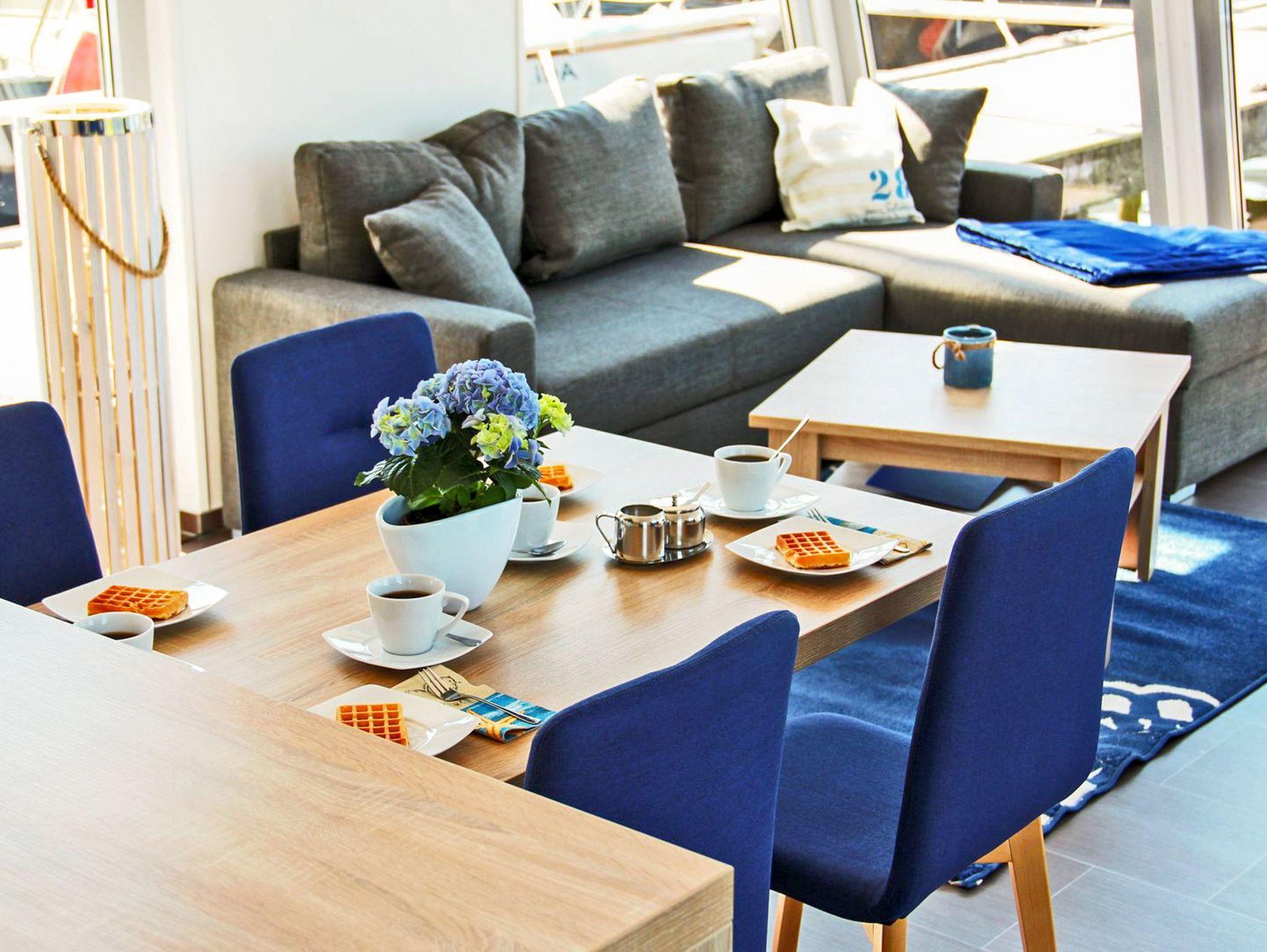 Floating House Xenia liegt ruhig am Rand der Marina Ueckermünde ? mit direktem Blick auf das Wasser und nur einen kurzen Spaziergang vom feinsandigen Strand entfernt. Das modern und maritim gestaltete Hausboot bietet mit seinen 55m² Wohnfläche und zwei separaten Schlafzimmern Platz für bis zu 3 Personen. Damit ist Xenia ideal für Paare oder kleine Familien, die einen entspannten Urlaub in Wassernähe suchen. Im Inneren erwartet dich ein großzügiger Wohnbereich mit gemütlicher Eck-Couch, einem Esstisch und einer offen integrierten Küche. Diese ist ausgestattet mit Ceran-Kochfeld (2 Platten), Mikrowelle, Spülmaschine, Kühlschrank, Kaffeemaschine, Toaster, Wasserkocher und allem, was du für die Zubereitung deiner Lieblingsgerichte brauchst. Große Fensterfronten lassen viel Licht herein und holen dir das Wasser direkt ins Wohnzimmer. Das Schlafzimmer mit Doppelbett (160x200) sowie ein weiteres mit Einzelbett (90x200) bieten dir ruhige Rückzugsorte mit Wohlfühlatmosphäre. Die komfortable Regen-Dusche und das separate WC mit Waschbecken sorgen für den täglichen Komfort. Als besonderes Highlight erwartet dich an Bord eine Infrarot-Wärmekabine für zwei Personen ? perfekt für entspannte Stunden, wenn draußen mal eine frische Brise weht. Noch mehr Urlaubsgefühl schenkt dir die großzügig möblierte Dachterrasse. Ausgestattet mit Sofa, Sesseln, Liege und Sonnenschirm ist sie dein privater Lieblingsplatz zum Sonnenbaden, Lesen oder einfach zum Schiffe-Gucken. Selbstverständlich steht dir auch ein kostenfreier Parkplatz am Hafen zur Verfügung. An Bord findest du außerdem Sat-TV, Radio und CD-Player und eine Klimaanlage mit Heizfunktion. Ein kleiner, gut erzogener Hund ist bei uns herzlich willkommen.Bei den Fotos handelt es sich um Beispielfotos, die Ausstattung kann abweichen.