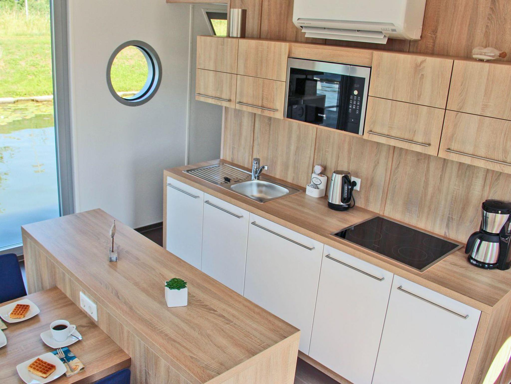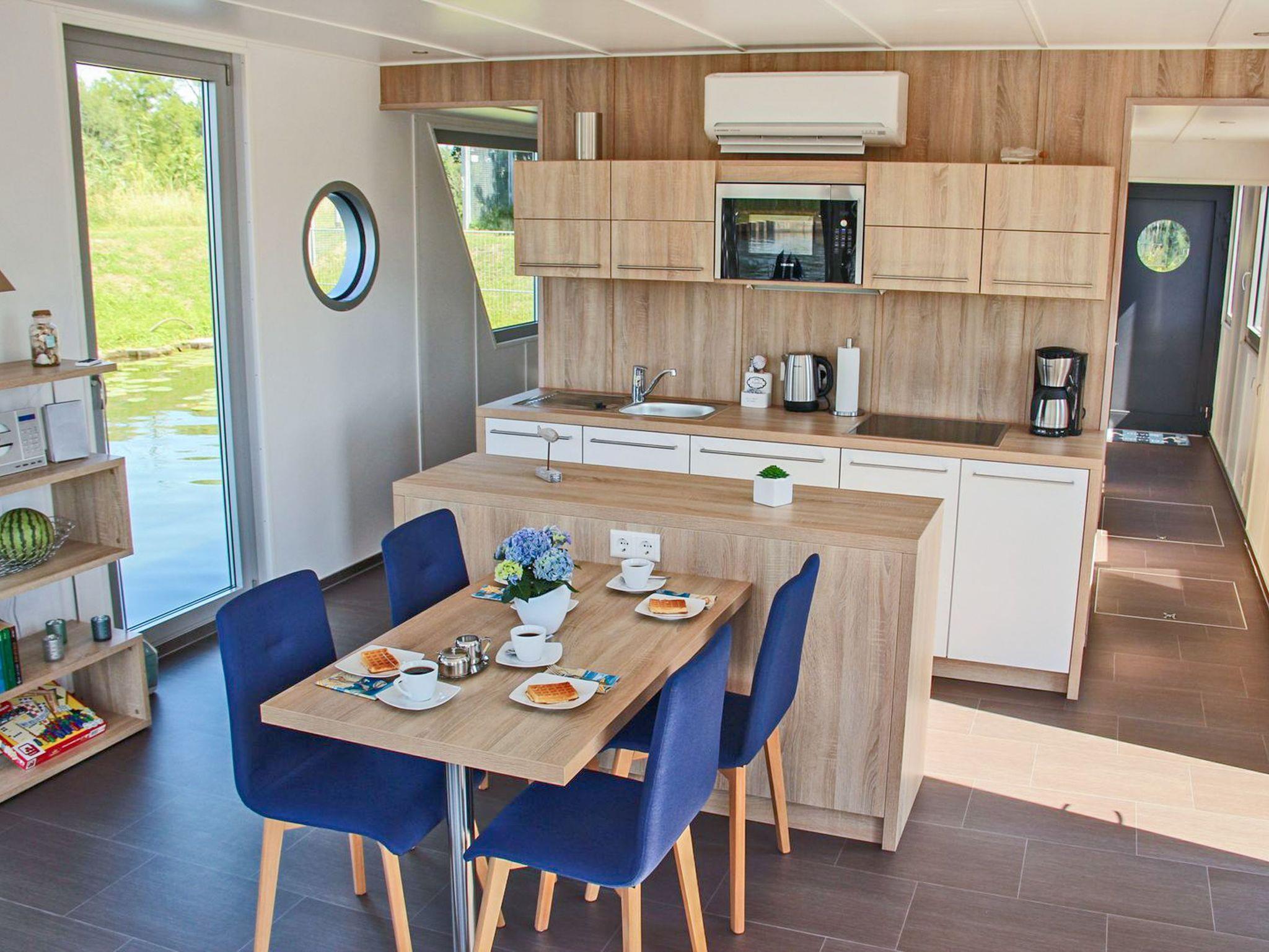 Die beiden schwimmenden Ferienhäuser Floating House Undine und Floating House Xenia liegen idyllisch am Rand des Hafens in der Lagunenstadt Ueckermünde, direkt an der Uecker und nur wenige Schritte vom feinsandigen Strand entfernt. Inmitten der geschützten Natur an der Südküste des Oderhaffs bieten sie dir einen ruhigen Rückzugsort mit echtem Wasserblick und viel Komfort. Das Floating House Undine verfügt über 44 m² Wohnfläche, zwei separate Schlafzimmer und bietet Platz für bis zu 4 Personen ? ideal für Familien oder Freunde, die das maritime Leben lieben. Die Xenia ist mit 55 m² etwas größer, aber auf maximal 3 Personen ausgelegt, was sie besonders für Paare oder kleine Familien zu einem gemütlichen Ort macht. Beide Hausboote sind hundefreundlich, klimatisiert und mit WLAN sowie einem eigenen Parkplatz auf dem Gelände ausgestattet. Große Fenster holen die Natur direkt ins Haus, ob du im lichtdurchfluteten Wohnbereich entspannst, auf der Terrasse am Bug deinen Kaffee genießt oder den Sonnenuntergang vom Sonnendeck aus beobachtest ? das Leben auf dem Wasser ist hier zum Greifen nah. Die Umgebung rund um die Hausboote bietet zahlreiche Freizeitmöglichkeiten. In der Marina selbst findest du unter anderem ein Restaurantschiff, Boots- und Fahrradverleih, eine Minigolfanlage, ein Volleyballfeld und sogar einen Grillplatz. Am nahen Badestrand kannst du dich in die Ostseeluft legen oder sportlich aktiv werden. Auch Touren mit dem Ausflugsschiff oder im Kanu auf der Uecker starten direkt vor deiner Haustür. Die Floating Houses Undine und Xenia sind zwischen April und Oktober buchbar ? genau dann, wenn das Wasser glitzert, der Himmel weit ist und die Region ihre volle Schönheit entfaltet.