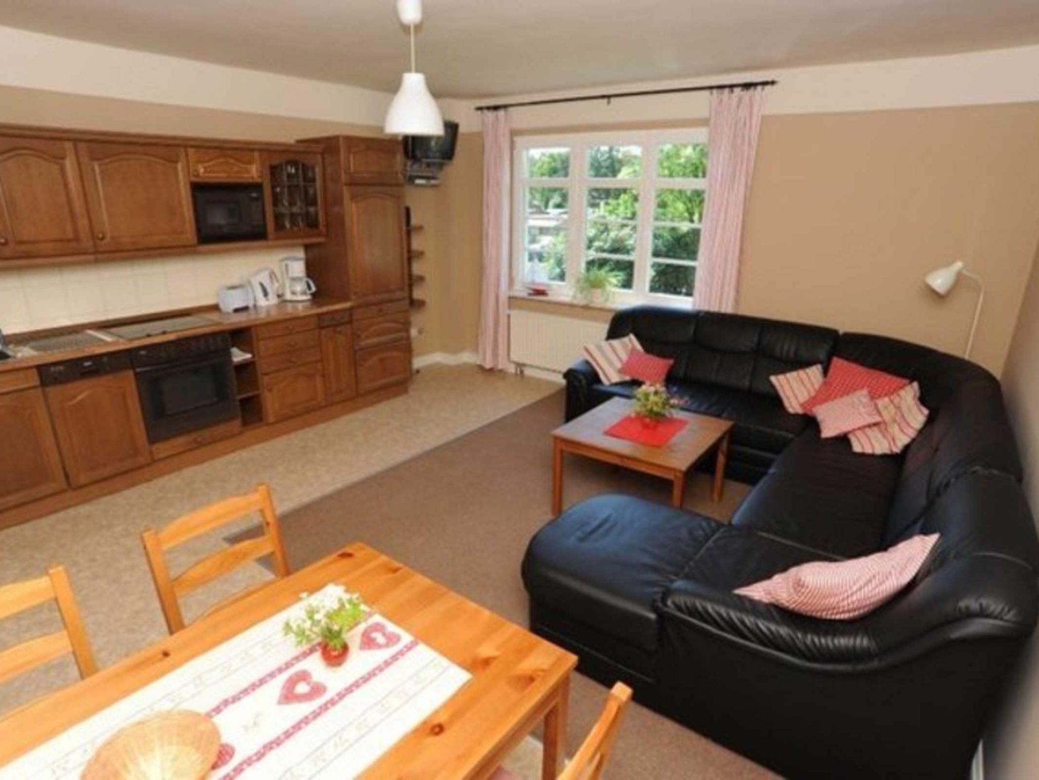 Besuchen Sie uns in der VILLA SEEFELD ÜCKERMÜNDE und sichern Sie sich das beste Angebot. Das Wohnzimmer ist mit einer ausklappbaren Sitzgarnitur und TV ausgestattet. Im Schlafzimmer befindet sich ein vollwertiges Doppelbett. Dusche und WC sind räumlich voneinander getrennt. Die Wohnung verfügt über eine Küchenzeile.