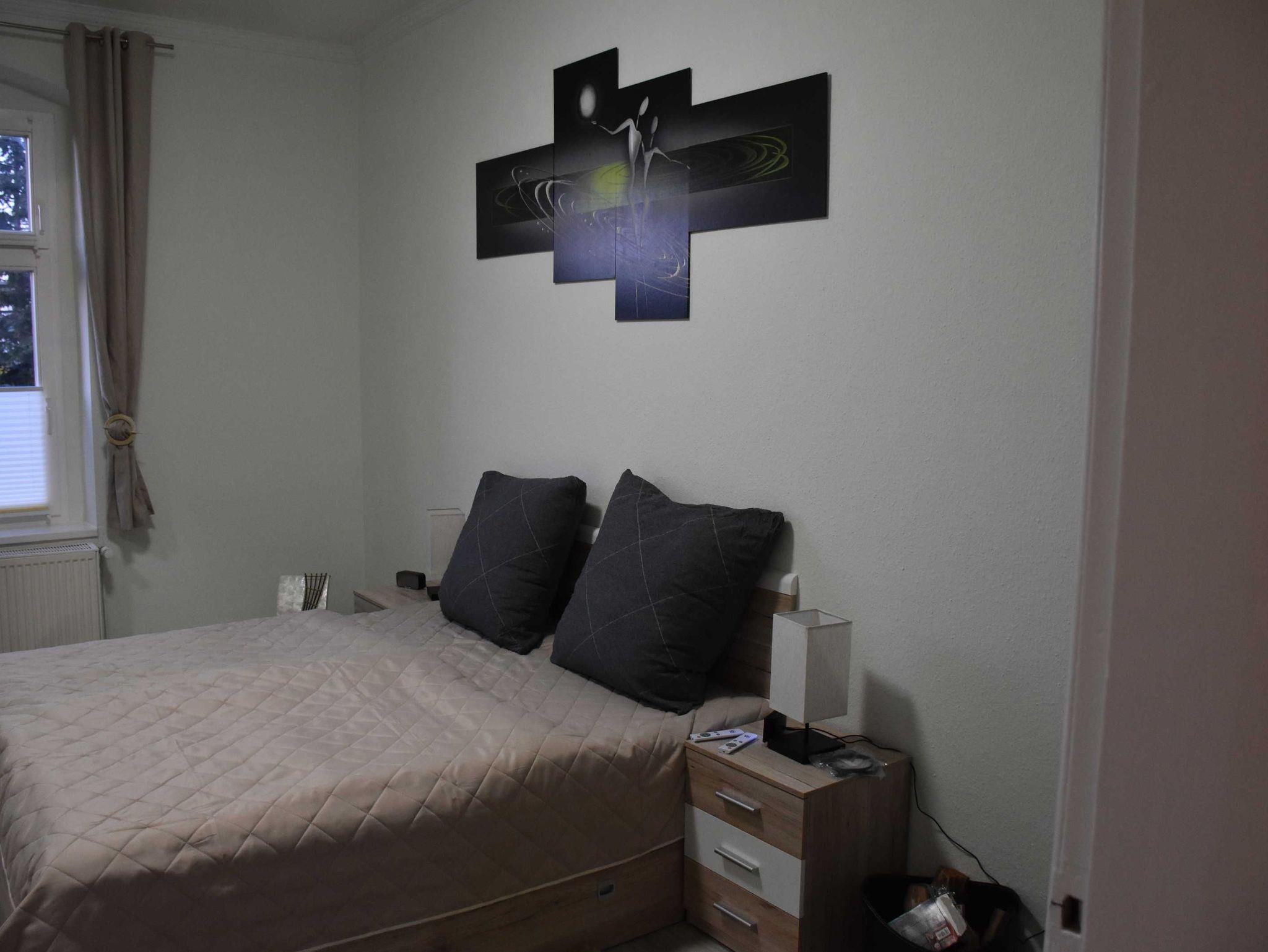 Die Fußböden im Wohn- und Schlafbereich sowie im Flur sind mit Laminat ausgelegt. Im Schlafzimmer erwartet die Gäste ein großes Doppelbett (1,80 x 2,00m) mit verstellbaren Lattenrosten und hochwertigen Matratzen. Ein großer Kleiderschrank bietet Platz für die Urlaubsgarderobe. Nachttische mit Touchlampen und 2 Fernbedienungen für das