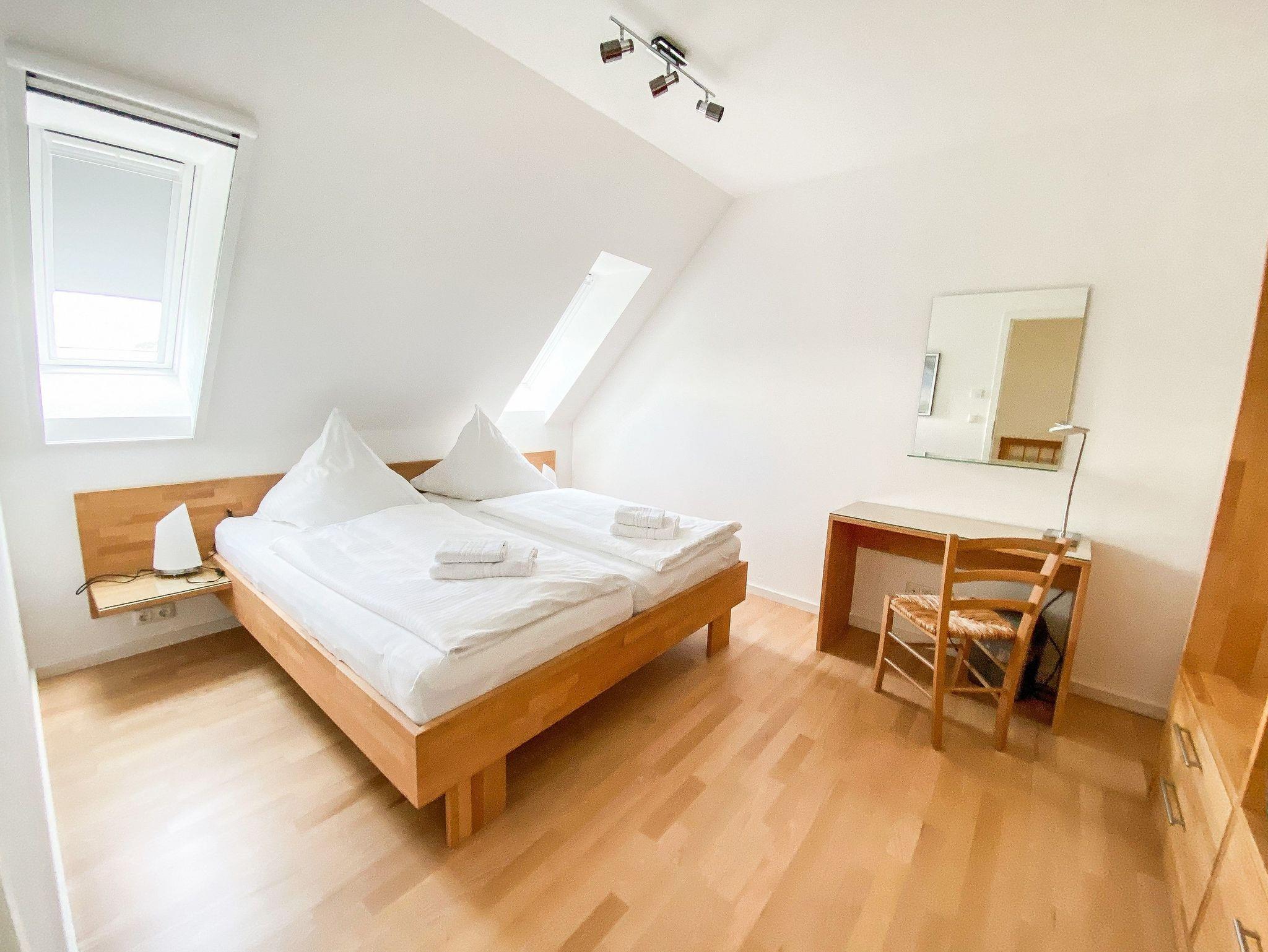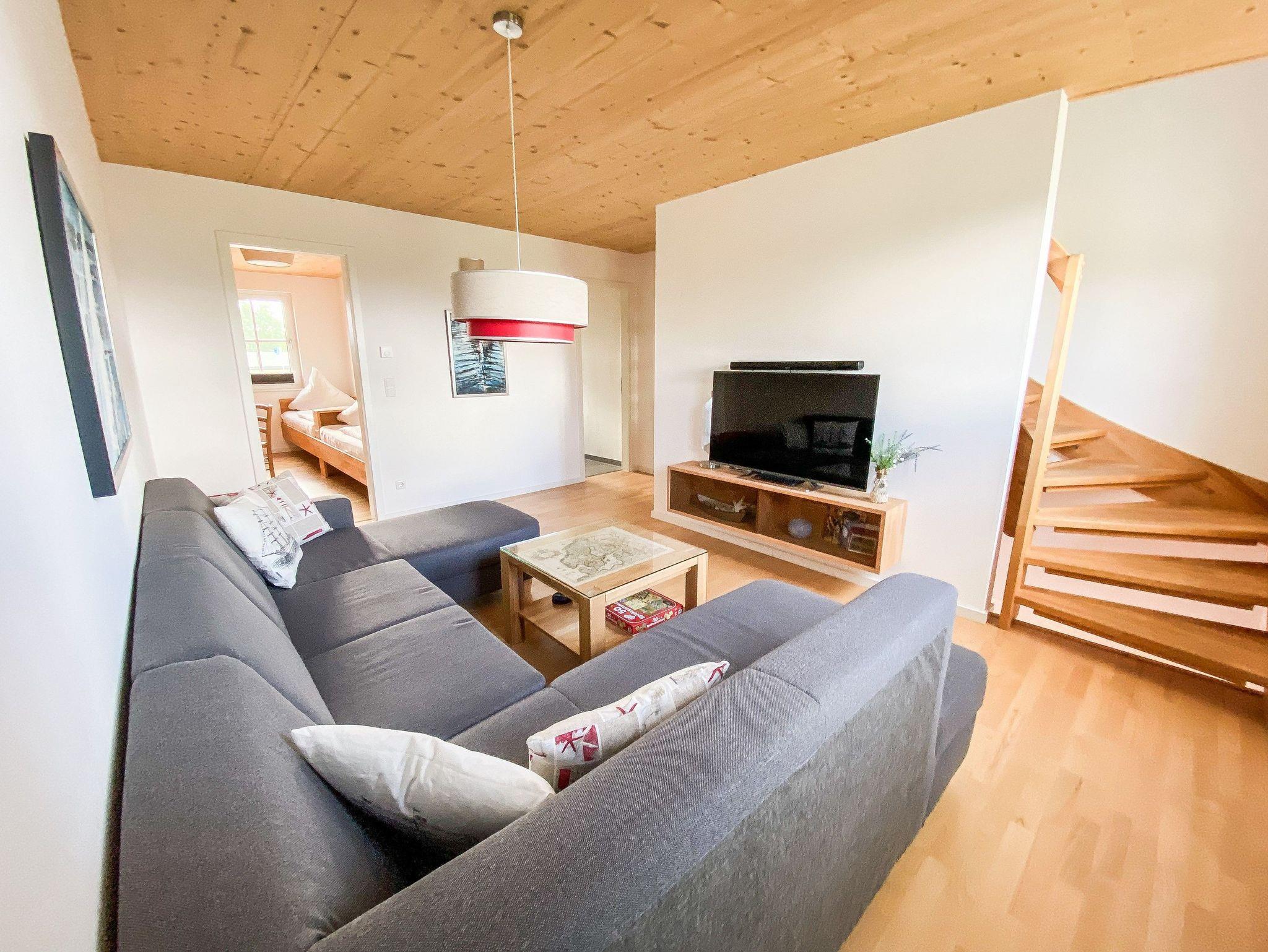Im 1. OG befinden sich der Wohnraum (Polstermöbel, Flachbild-TV), 1 Schlafraum (2 Einzelbetten) und das Bad mit Dusche und Wanne. Im 2. OG gibt es 2 weitere Schlafräume mit je einem Doppelbett. Diese Schlafräume stehen erst ab einer Belegung von mindestens 3 Personen zur Verfügung. Für Kleinkinder stehen ein Kinderbett und ein Kinderhochstuhl kostenfrei bereit (bitte den Bedarf vor Anreise beim Eigentümer anzeigen). Internet (WLAN) und Magenta-TV sind ebenfalls vorhanden.