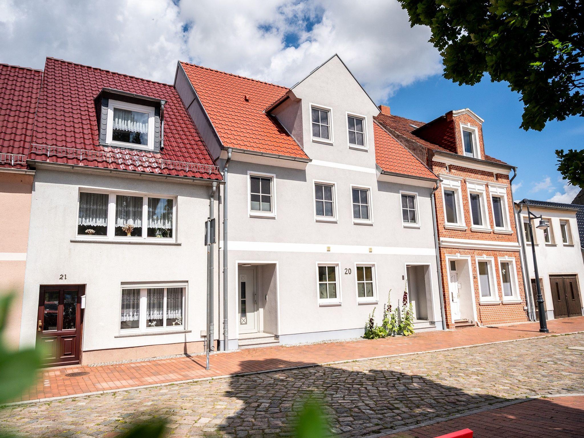 Das 100 qm große Ferienhaus, eine im Jahr 2020 neu erbaute Doppelhaushälte für max. 6 Personen, befindet sich auf einem 750 qm großen Erholungsgrundstück (Gemeinschaftsnutzung mit zweiter Doppelhaushälfte) direkt in der Altstadt vom Seebad Ueckermünde. Der Hafen, Restaurants, Cafés, Einkaufsmöglichkeiten, Bahnhof und Kinderspielplatz befinden sich im Umkreis weniger Gehminuten. Das Haus wurde in modernster ökologischer und diffusionsoffener Bauweise mit natürlichen Baustoffen gebaut. Das garantiert eine natürliche und allergikerfreundliche Raumatmosphäre und verhindert die Aufheizung durch Sonneneinstrahlung.