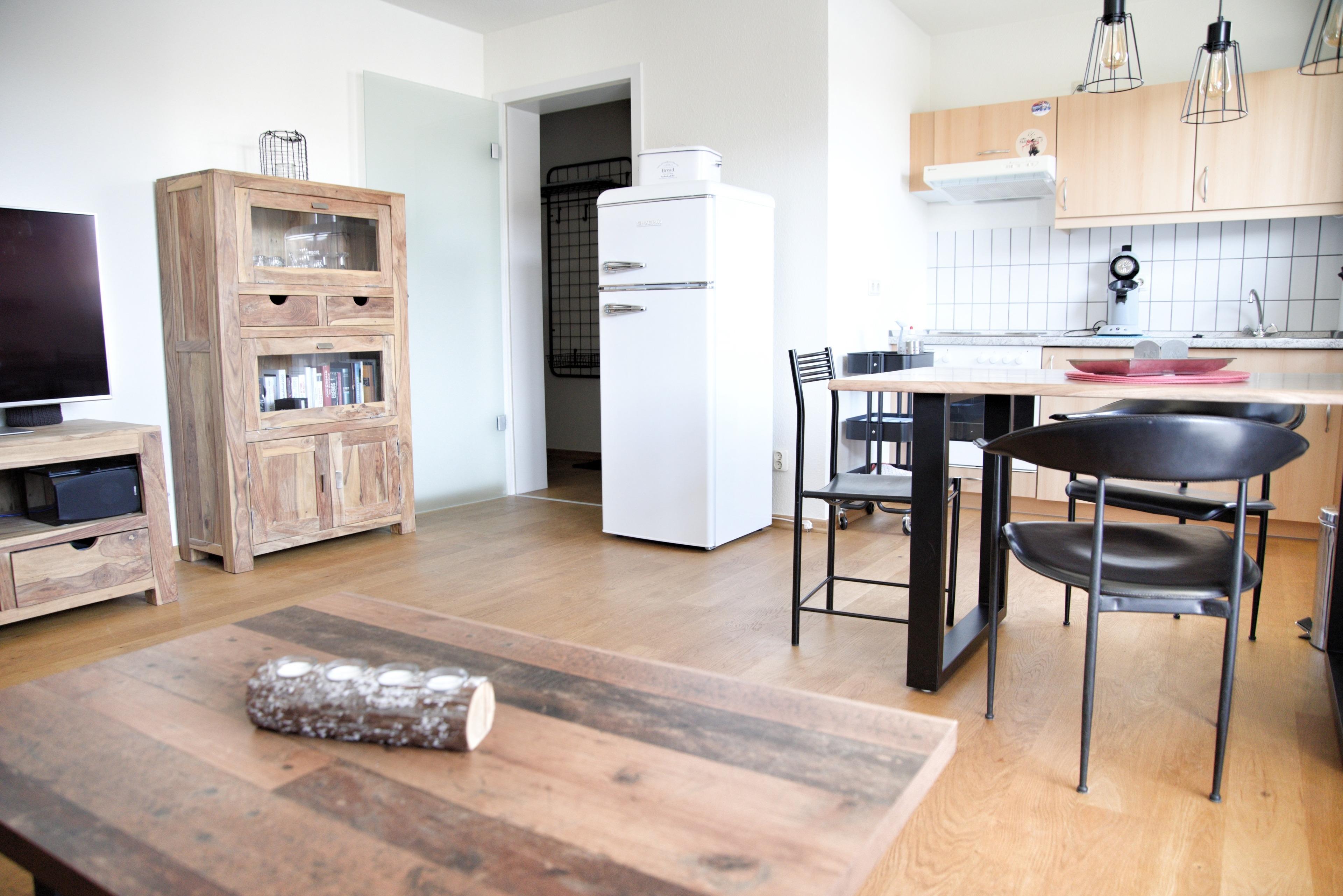 Die Wohnküche ist zum Wohnzimmer hin offen, was den Raum großzügiger erscheinen lässt. Bestandteile sind unter anderem ein Kochfeld, einen Backofen, viel Geschirr sowie eine Kühl- und Gefrierkombination. In Ihrem Schlafzimmer befindet sich ein Doppelbett. Nachtische, Leselampen und Garderoben möchten hier von Ihnen genutzt werden. Ihr Flur beherbergt eine Flurgarderobe und einen Spiegel. Das Appartement Bora liegt im ersten Obergeschoss des Hauses Störtebeker, im Eingang 2. In unmittelbarer Nähe dieses Appartements befinden sich weitere Ferienappartements unserer Gesellschaft. Eine gemeinsame Anmietung ist hier sehr gut möglich.