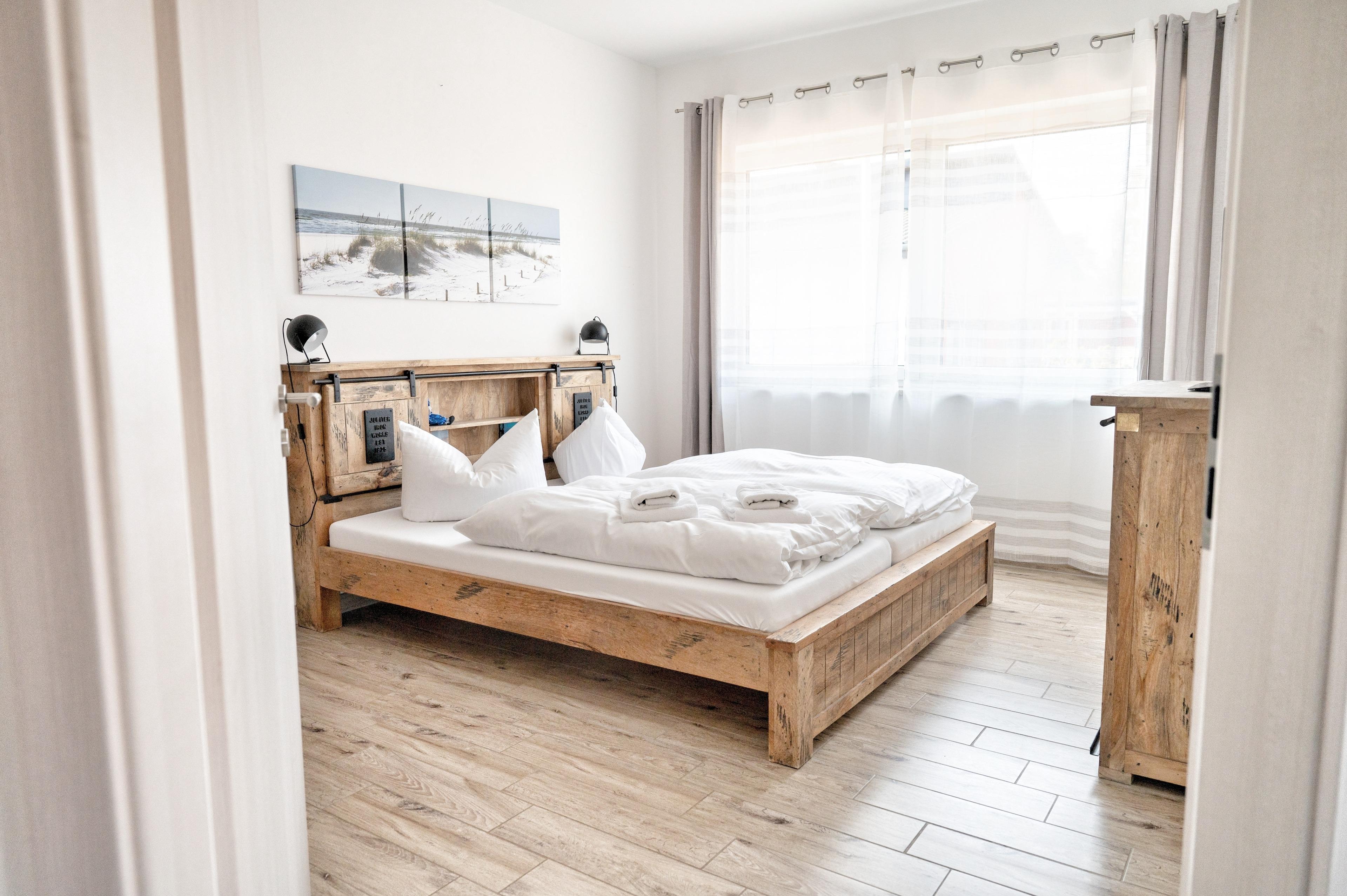 Ihr Schlafzimmer ist mit einem großes Doppelbett mit einer Liegefläche von 180 cm x 200 cm ausgestattet. Des weiteren finden Sie hier für Ihre Nutzung Nachttische und Verstaumöglichkeiten. Das Badezimmer ist mit einer großen Dusche ausgestattet. Ihre mitgebrachten Badezimmerutensilien finden in einem maritimen Regal ihren Platz.