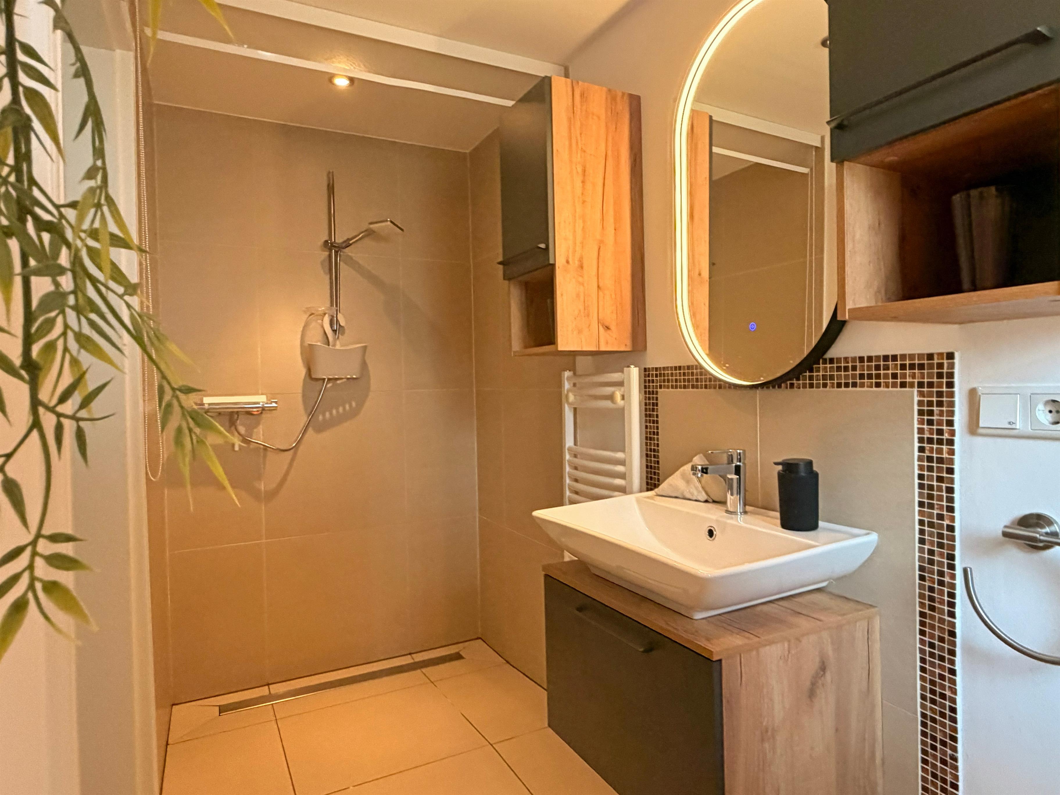Das Haus wurde vollständig modernisiert, um den heutigen Komfortwünschen zu entsprechen. Dabei war es uns sehr wichtig, den Charme des historischen Gebäudes zu erhalten. Das 1-Zimmer-Apartment verfügt über ein komfortables Boxspringbett und einen Essbereich. Die Pantryküche befindet sich im Durchgangsbereich. Das separate Bad verwöhnt mit einer großzügigen, bodengleichen Dusche.