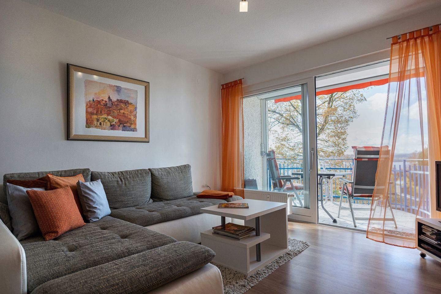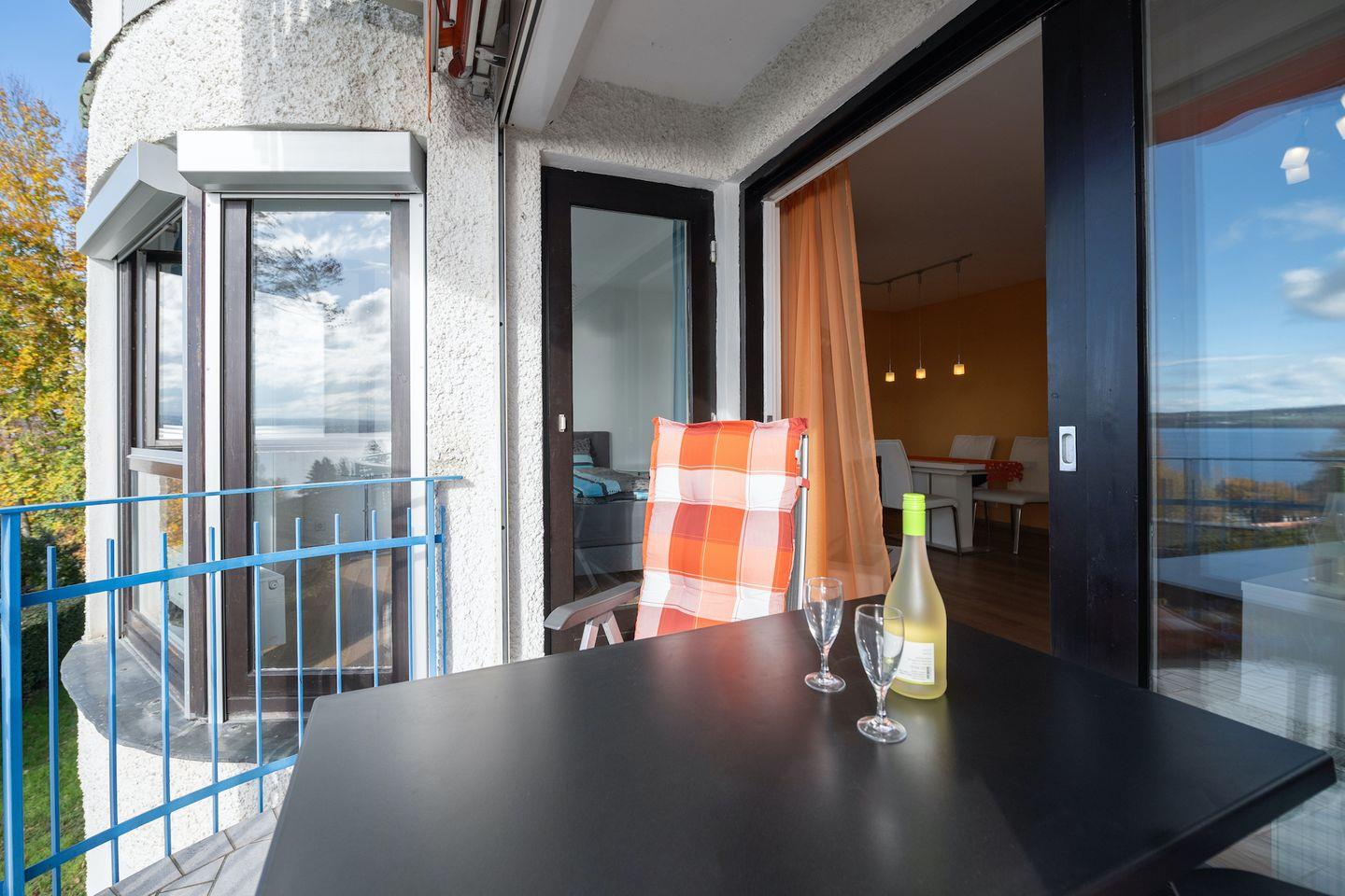 Genießen Sie die natürliche Helligkeit und den atemberaubenden Blick durch die großzügigen Fenster. Die Wohnung wurde mit viel Liebe zum Detail eingerichtet, um Ihnen ein Gefühl von Gemütlichkeit und Zuhause zu vermitteln. Vom Balkon aus können Sie die frische Seeluft genießen und die Tischgruppe unter der Markise lädt zu entspannten Stunden im Freien ein. Der Blick erstreckt sich weit über den Bodensee, das Schweizer Ufer und die majestätischen Alpen im Osten sowie über den Überlinger See und die Insel Mainau im Westen.