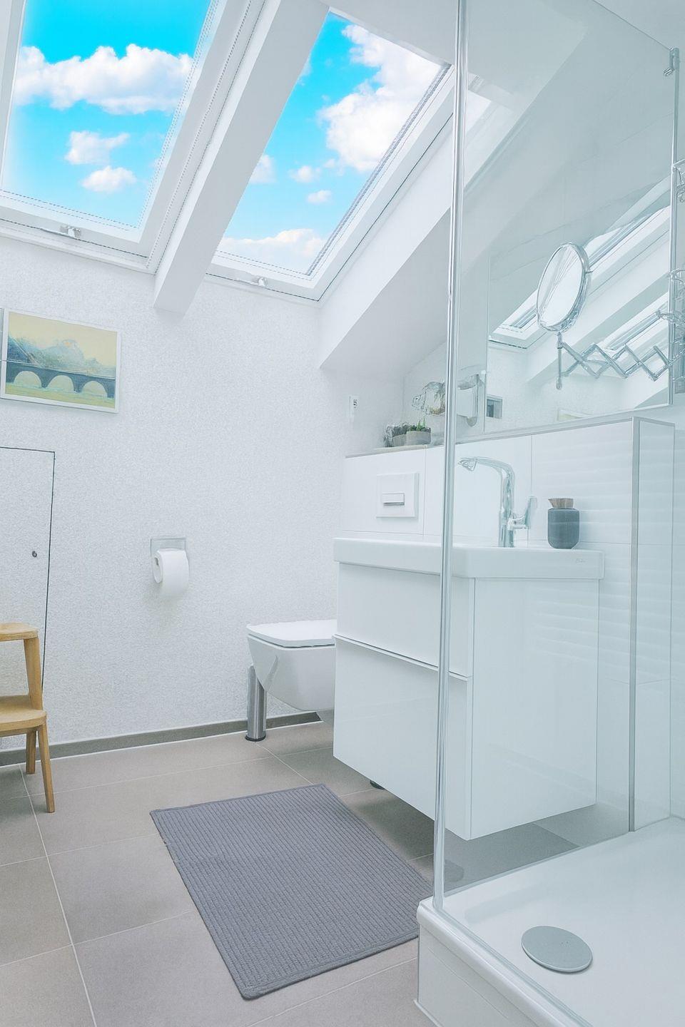 Fliegenschutz, Schminkspiegel, Regenduschkopf, dimmbaren Lichtern und