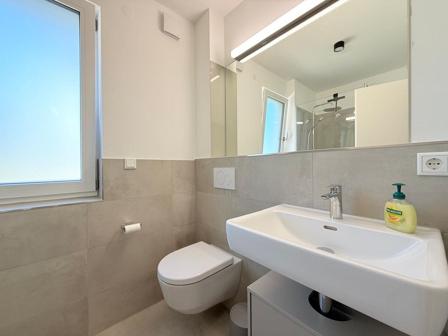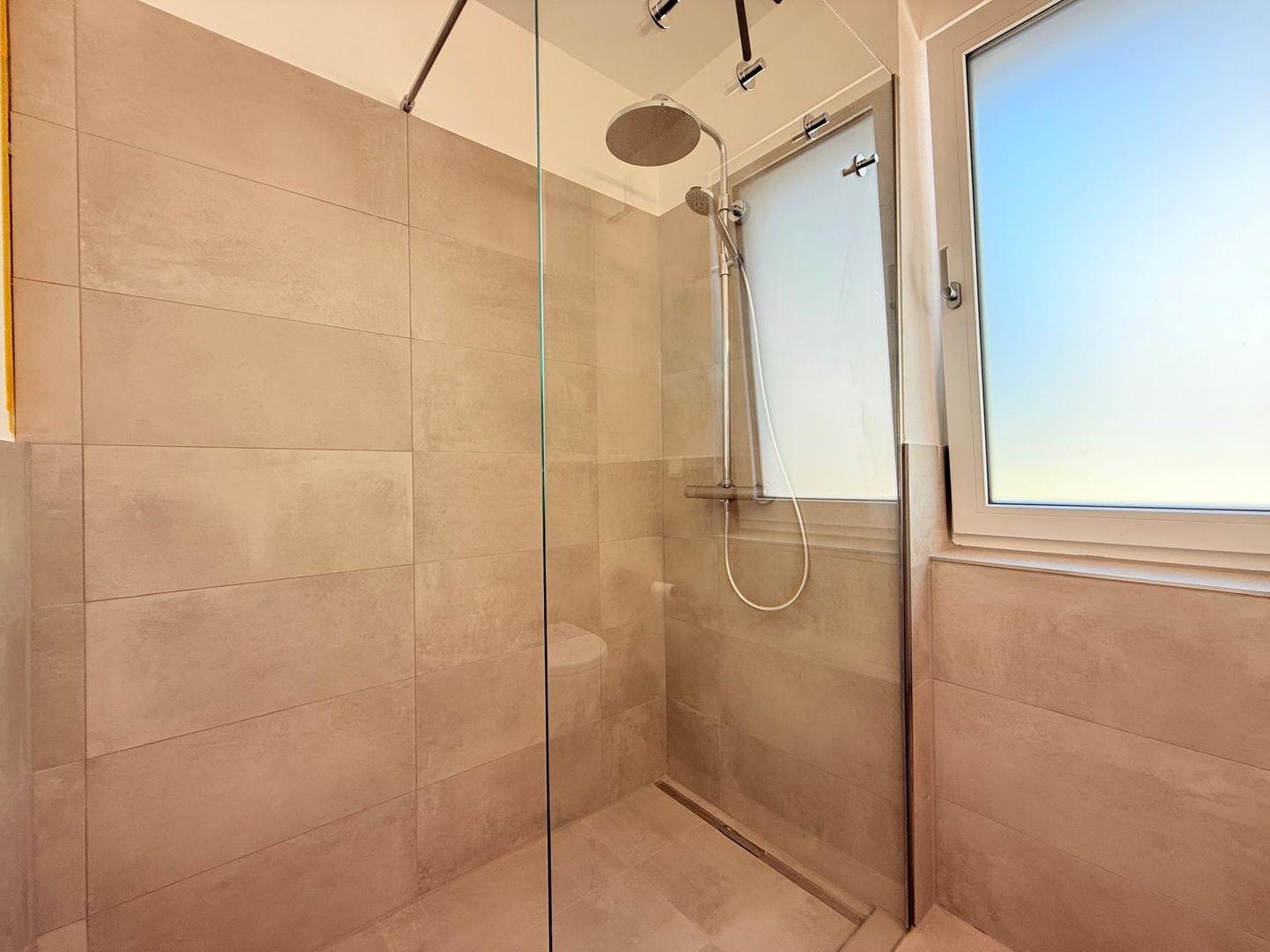 Das Badezimmer ist mit einer bodengleichen Dusche, Haartrockner, Waschbecken, WC und Spiegel ausgestattet. Badetücher, Handtücher, Bettwäsche sowie Reinigungsmittel sind inbegriffen. Waschmaschine und Trockner stehen zur gemeinschaftlichen Nutzung bereit, ein Wäscheständer ist ebenso vorhanden. Für zusätzlichen Komfort sorgt die durchgängig installierte Fußbodenheizung, betrieben über eine effiziente Wärmepumpe. Sichtschutz an allen Fenstern und Rauchmelder gewährleisten Sicherheit und Privatsphäre.