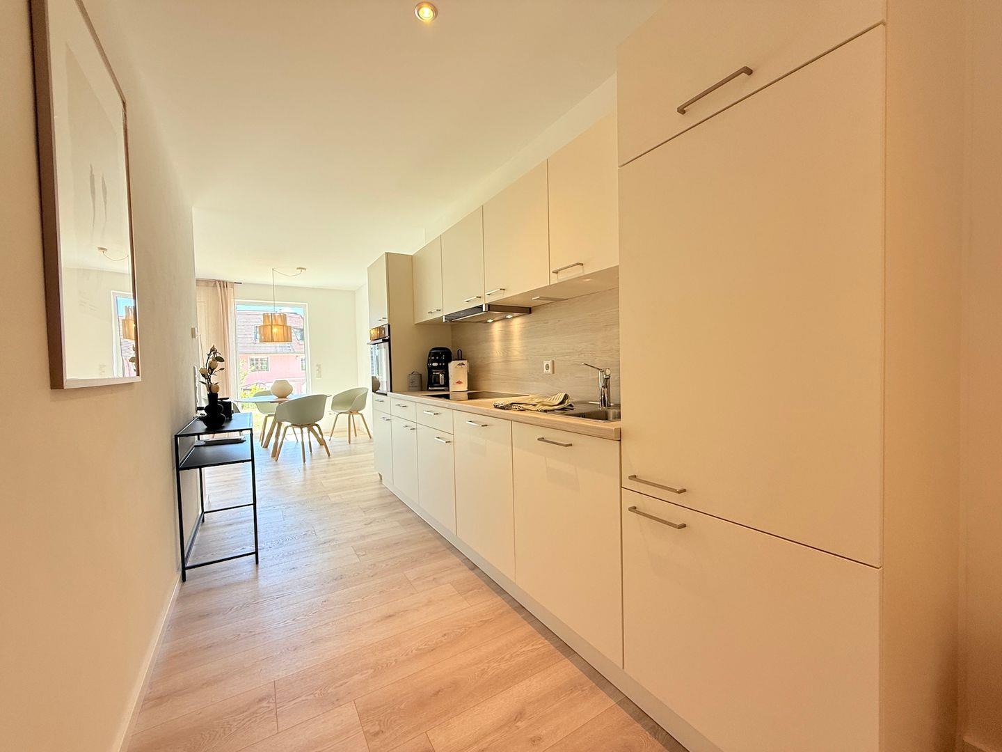 Die Suite besteht aus insgesamt drei Zimmern, darunter zwei separate Schlafzimmer. Sowohl im Wohn- als auch in den Schlafbereichen wurde ein pflegeleichter Vinylboden verlegt, der zur modernen Atmosphäre beiträgt. Der Wohnbereich ist mit einem komfortablen Sofa, Sessel sowie einem großzügigen Essbereich und Esstisch ausgestattet. Ein 44 bis 55 Zoll großer Fernseher mit digitalem Satellitenanschluss, Radio, Gesellschaftsspiele sowie kostenfreies WLAN (ab 25 MBit/s) sorgen für Unterhaltung und Konnektivität. Kaffeemaschine, Toaster, Spülmaschine und viele weitere Küchenutensilien gewährleisten in der offen zum Wohnzimmer gestalteten Küche maximale Funktionalität. Ein Backofen mit Elektroanschluss, ein 4-Platten-Herd, Kühlschrank mit Gefrierfach sowie eine komplette Ausstattung an Geschirr, Besteck und Kochutensilien stehen ebenfalls zur Verfügung.