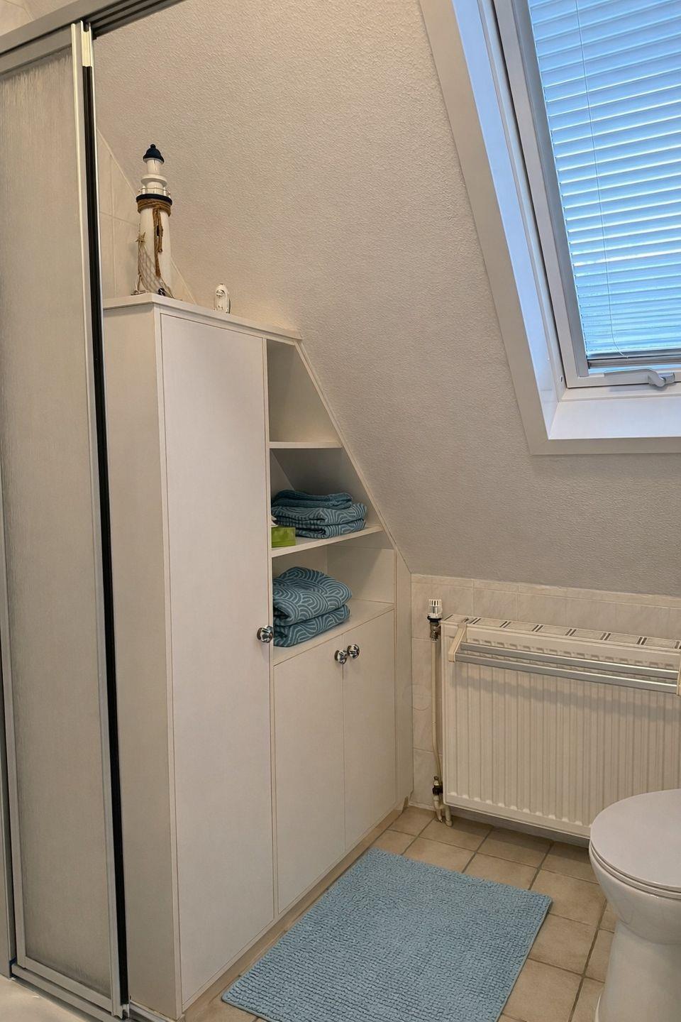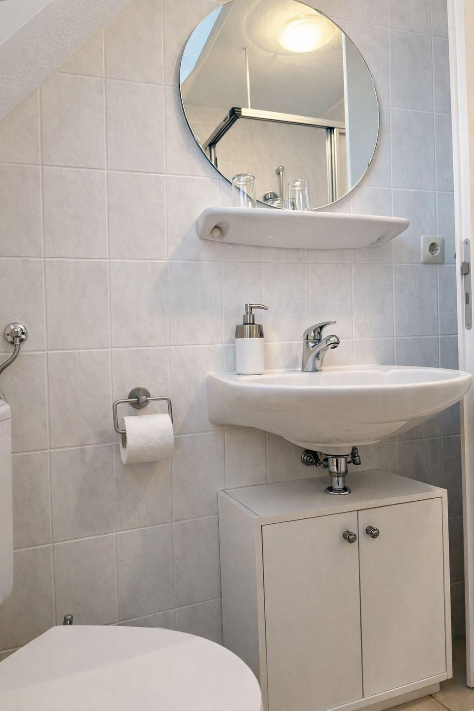 Das Badezimmer verfügt über eine Dusche und einen Föhn, Handtücher werden von der Verwaltung gestellt. Auf dem kleinen Balkon mit Sitzgelegenheit genießen Sie frische Luft oder ein Glas Wein am Abend.