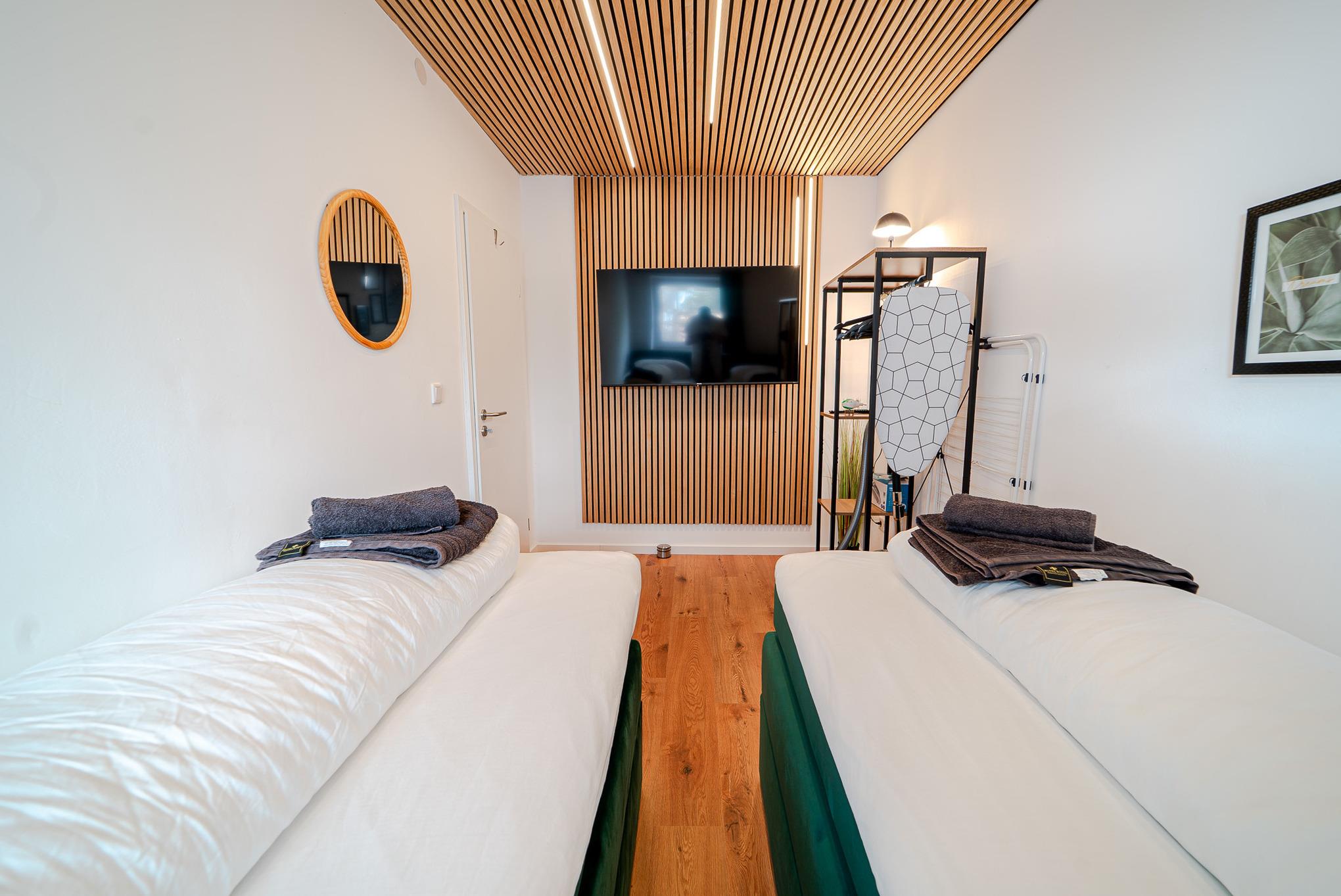 - Schlafzimmer 2: 1 Boxspringbett oder 2 Einzelbetten