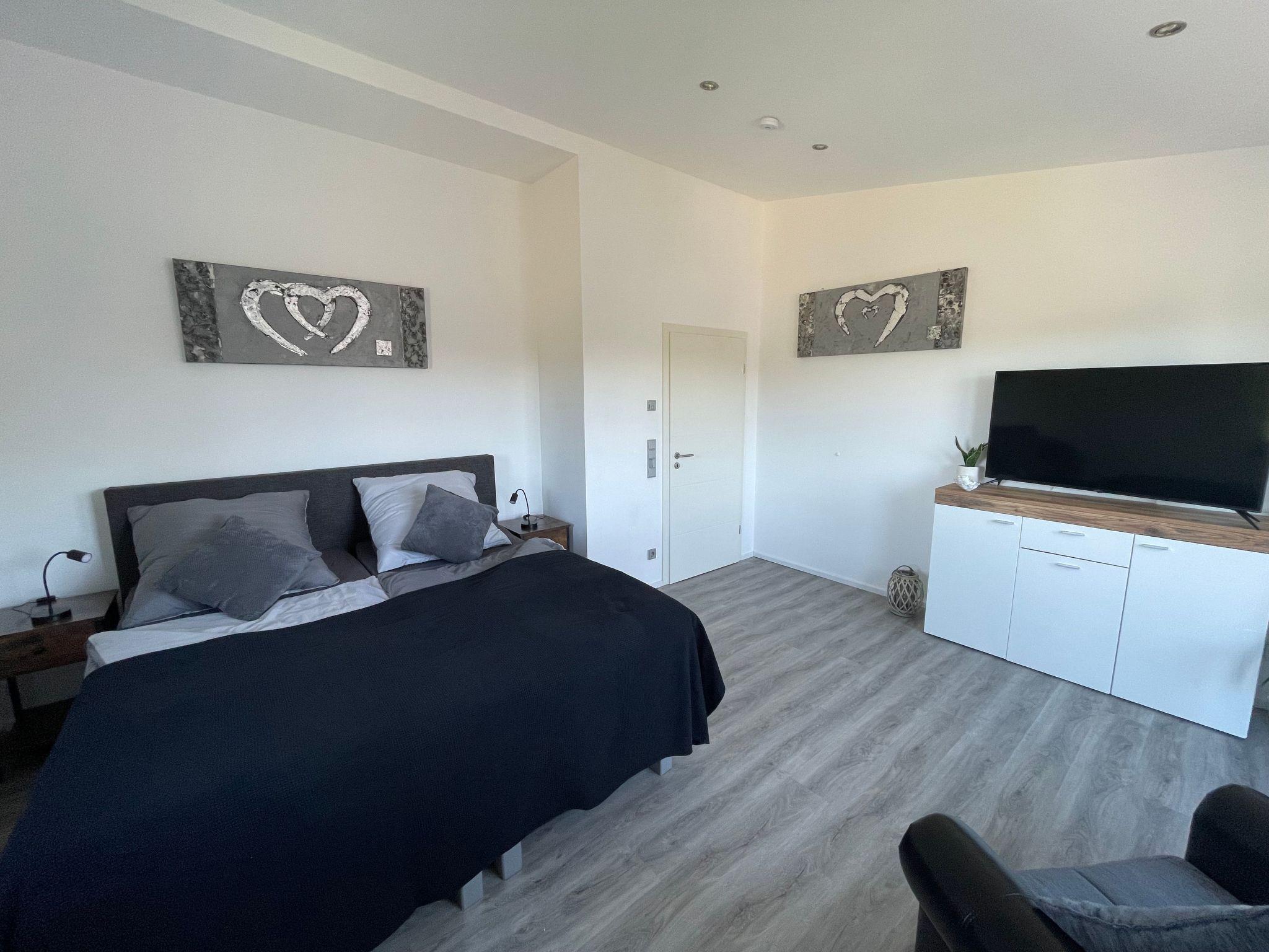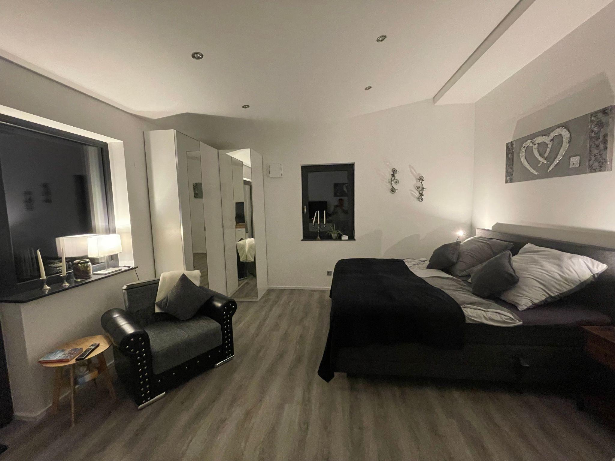 Das Schlafzimmer ist mit einem großen elektrischen Boxspring Doppelbett, Leseecke und Smart-TV ausgestattet und lädt zum Kuscheln und Entspannen am späten Abend ein.