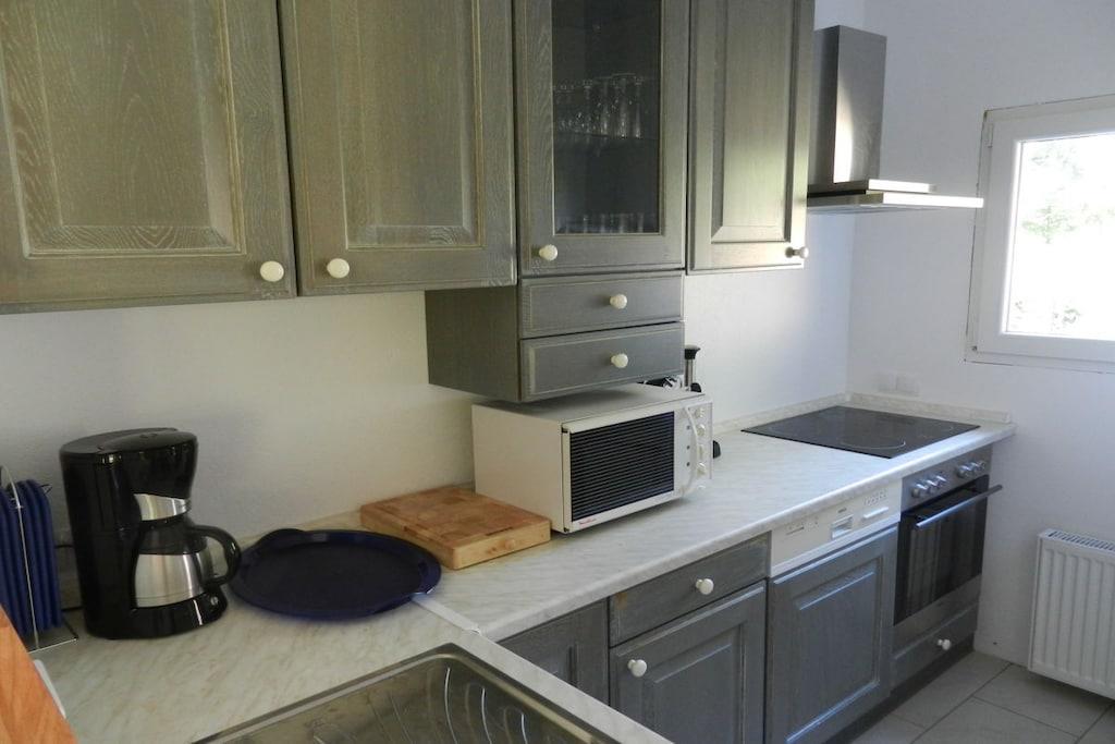 Stueetage: (Stue(, , bibliotek, enkeltsovesofa, enkeltsovesofa, Fjernsyn, pejs, DVD-afspiller, radio, CD-afspiller, stereoanlæg), spisestue(Fjernsyn, spisebord, pejs), Køkken(, , , , kogeplade, elkedel, brødrister, kaffemaskine, ovn, mikrobølgeovn, opvaskemaskine , køleskab, fryser, fryser, insektnet), soveværelse(, , , dobbeltseng, insektnet), soveværelse(, , , dobbeltseng, insektnet), badeværelse(, , toilet, bruser, bruser, håndvask, vaskemaskine, varme, føntørrer, insektnet), pulterkammer(, strygebræt, strygejern, tørreskab)) , , , , , Internetadgang, Internetadgang, Førstehjælp, vaskemaskine, varme, terrasse(, grill, havemøbler, solstole), have(Græsplæne, havemøbler, solstole), parkering, cykler til rådighed, strygebræt, strygejern, tørreskab
