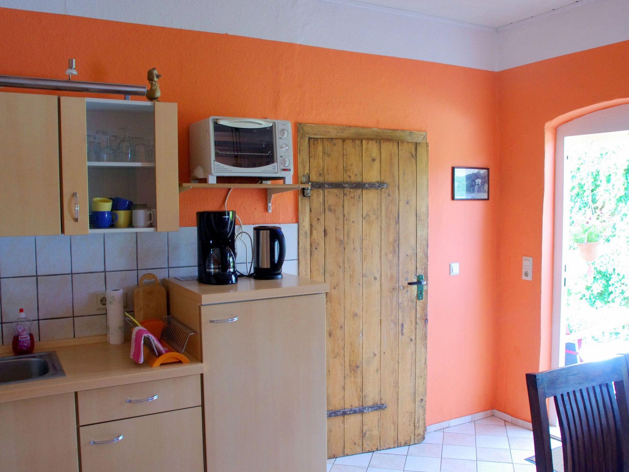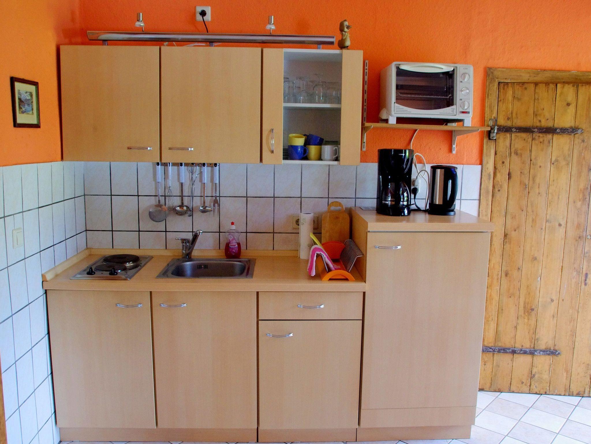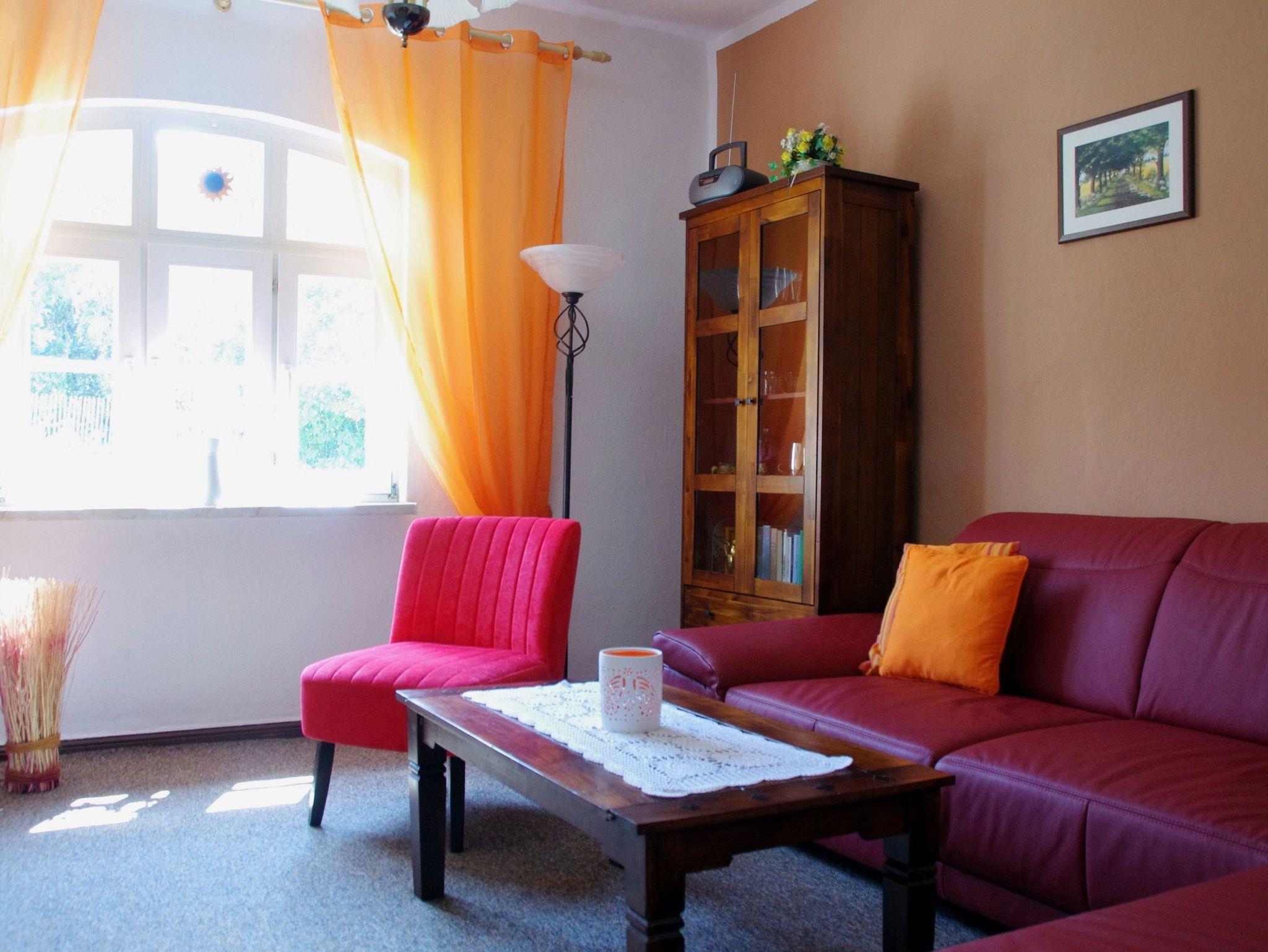 Die Wohnung verfügt über einen Wohnraum mit Couch und TV und einer großen Küche mit Essecke und Kamin. Zum Kochen stehen Ihnen zwei Kochplatten zur Verfügung. Es gibt einen Schlafraum mit Doppelbett und ein Schlafraum mit Doppelstockbett. Die Wohnung ist ca. 300 m vom Schloss Ulrichshusen und dem Restaurant Am Burggraben entfernt. Im Sommer finden hier die Konzerte der Festspiele Mecklenburg-Vorpommern statt.