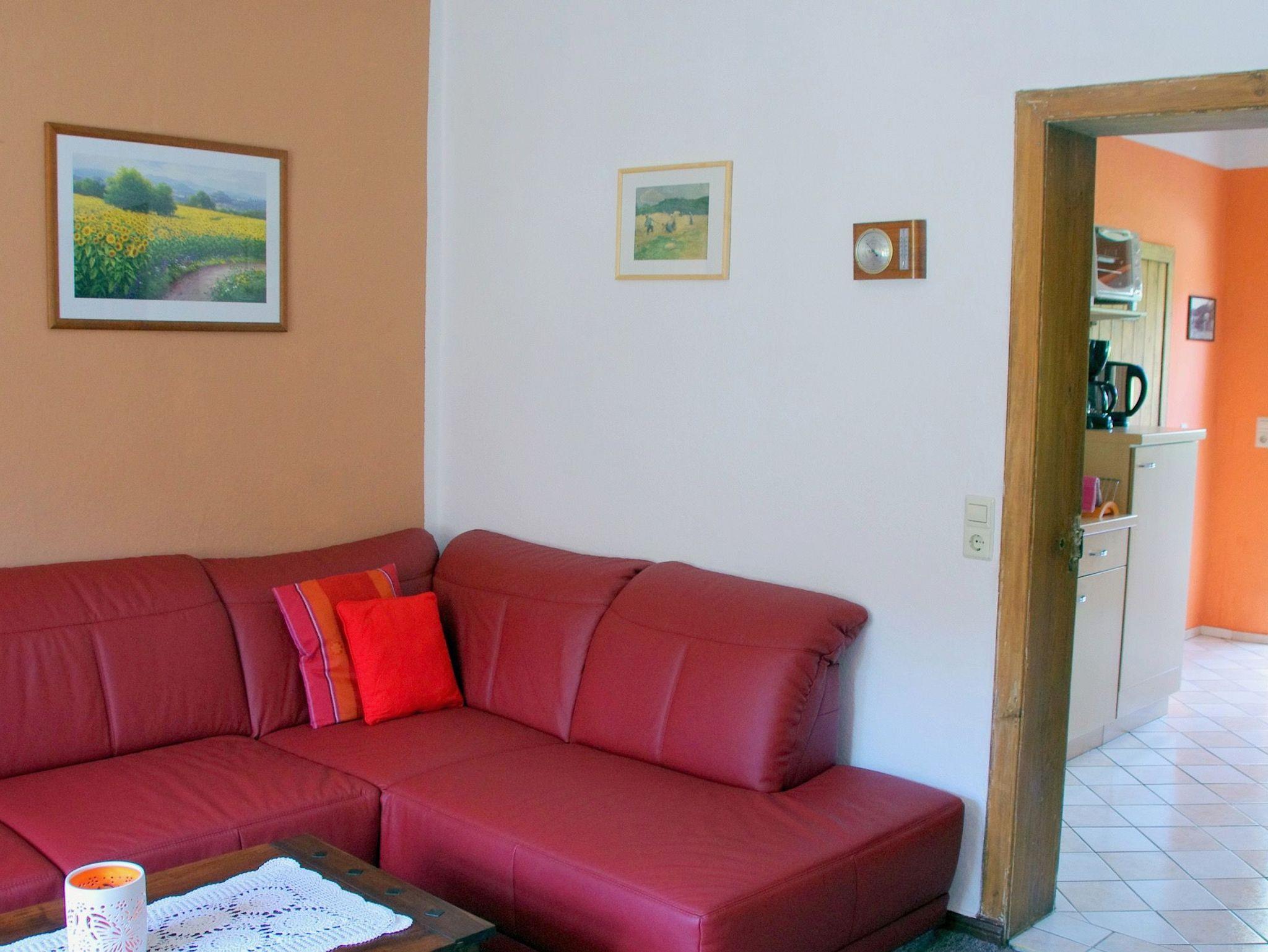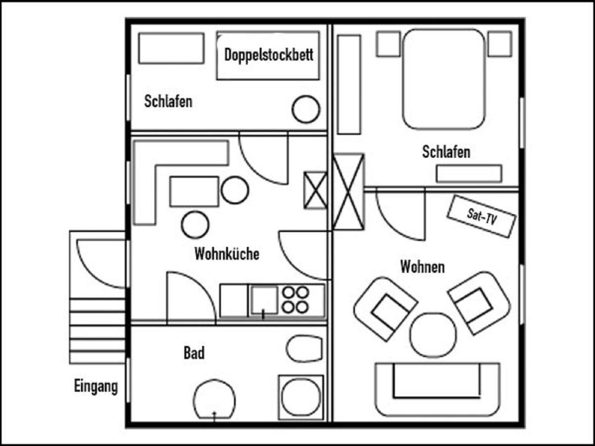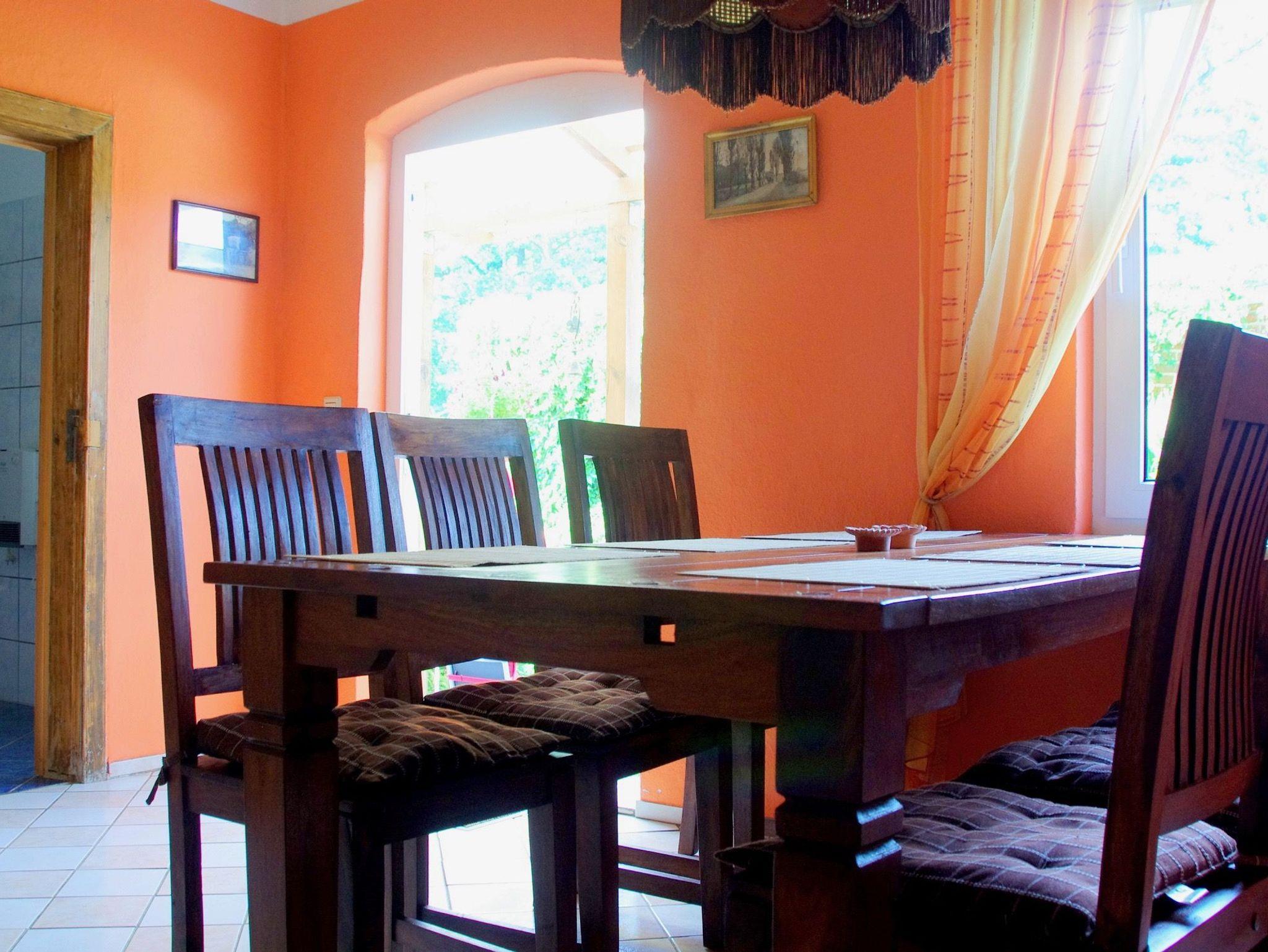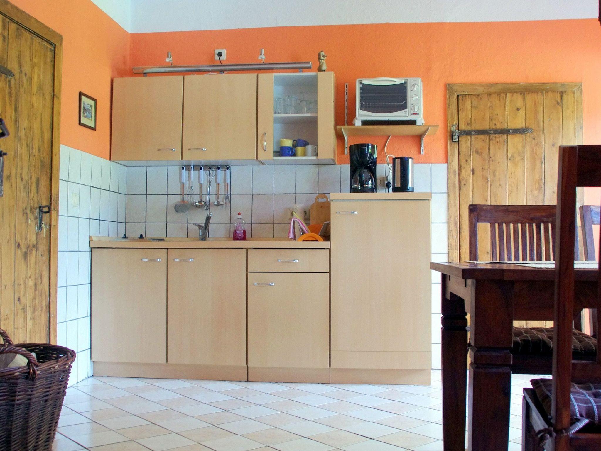 Die Wohnung verfügt über einen Wohnraum mit Couch und TV und einer großen Küche mit Essecke und Kamin. Zum Kochen stehen Ihnen zwei Kochplatten zur Verfügung. Es gibt einen Schlafraum mit Doppelbett und ein Schlafraum mit Doppelstockbett. Die Wohnung ist ca. 300 m vom Schloss Ulrichshusen und dem Restaurant Am Burggraben entfernt. Im Sommer finden hier die Konzerte der Festspiele Mecklenburg-Vorpommern statt.