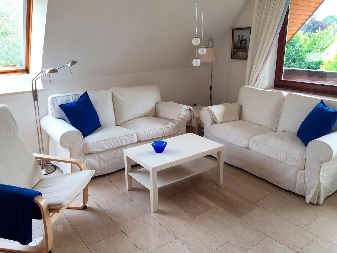 - ca. 70 m² für maximal 5 Personen. Für zwei Personen ideal und nicht zu groß. Hell und freundliche individuelle hochwertige gemütliche Einrichtung. Grillen und Sonnenbaden im weitläufigen großen Garten - über 2 Etagen im Ober- und Dachgeschoss