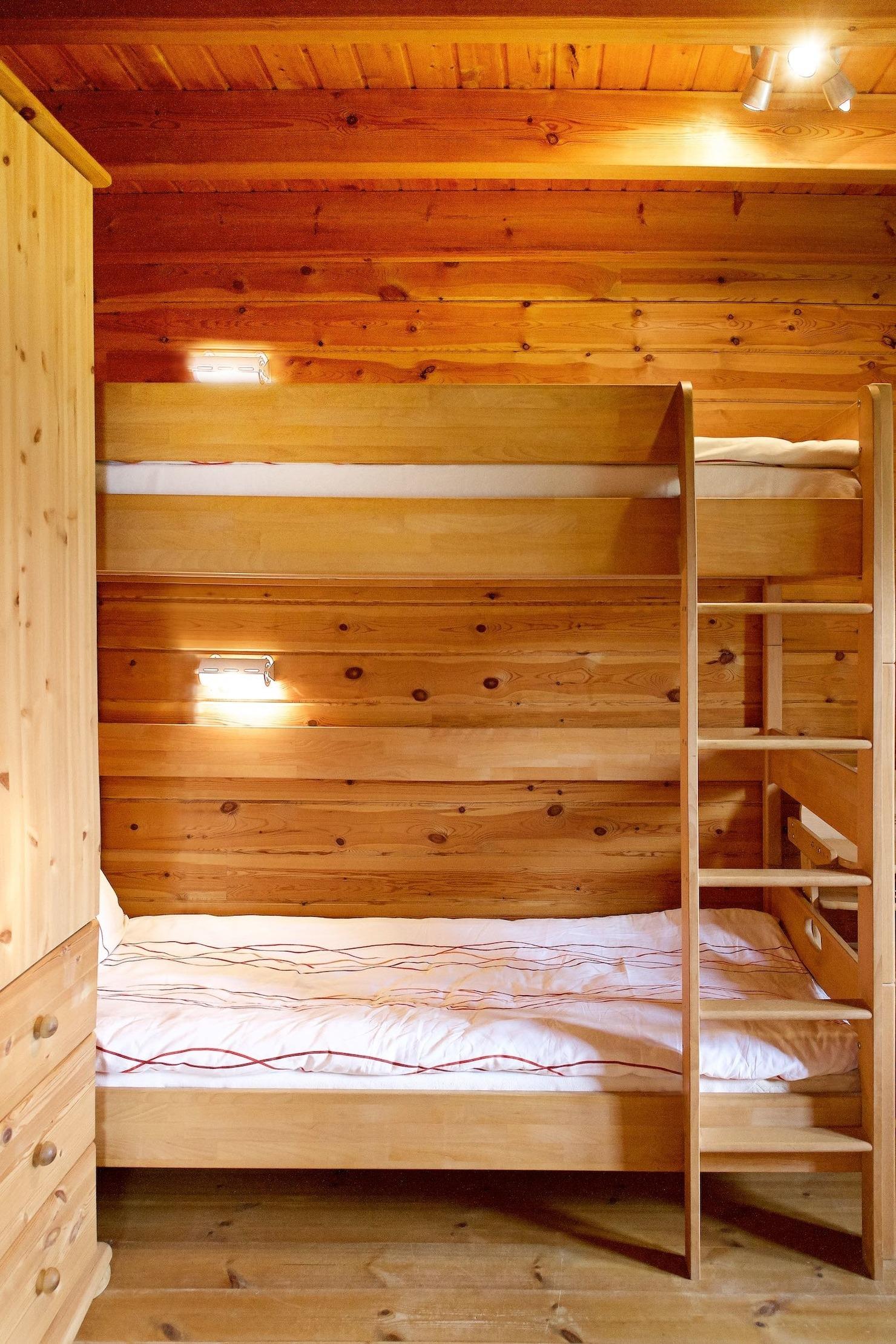Das Blockhaus Magnus ist das größte unserer Häuser und lässt viele Kombinationen zu. Familien mit mehreren Kindern, befreundete Alleinerziehende (oder Alleinreisende) mit ihren Kindern fühlen sich hier wohl. Direkt neben der vollständig ausgestatteten, offenen Küche versammeln sich alle am großen Tisch zum gemeinsamen Essen, Spielen oder Basteln. Die große Sofaecke im Wohnzimmer ist der Mittelpunkt des Hauses. Zünden Sie den Kaminofen an und schauen Sie entspannt ins wärmende Feuer.