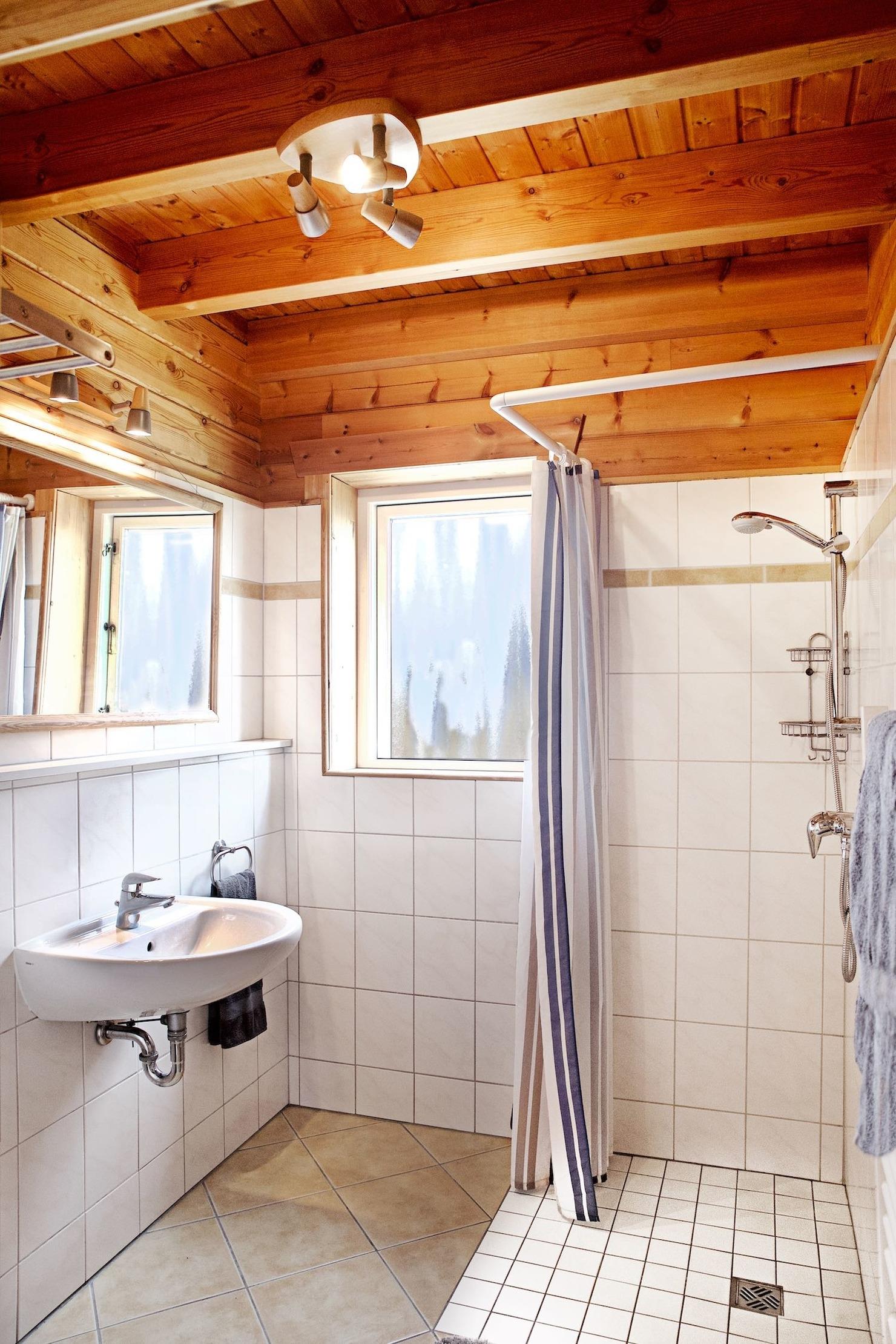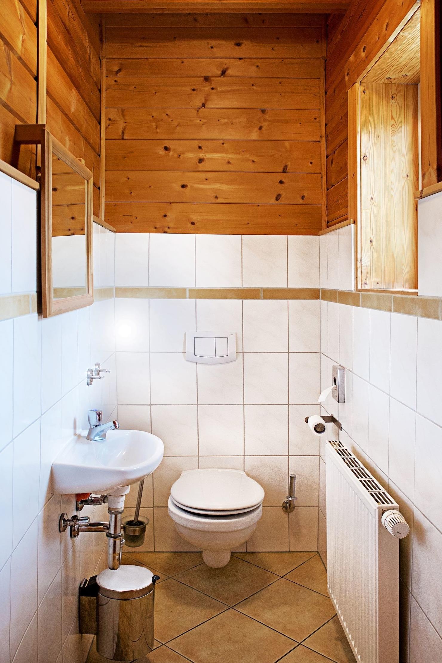 Es gibt eine offene Schlafgalerie im Obergeschoss. Praktisch sind das 2. Bad im Obergeschoss und ein separates WC im Erdgeschoss.