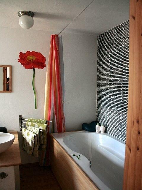 Das Zimmer befindet sich im ersten Stock des liebevoll renovierten Pferdestalls des Dreiseitenhofes. Es wurde im Frühjahr 2017 neu renoviert. Das angrenzende Bad verfügt über eine Badewanne mit Duschmöglichkeit. Der breite Waschtisch aus Bambusholz ist auch als Wickeltisch bestens geeignet. Ein Radio steht im Zimmer bereit.