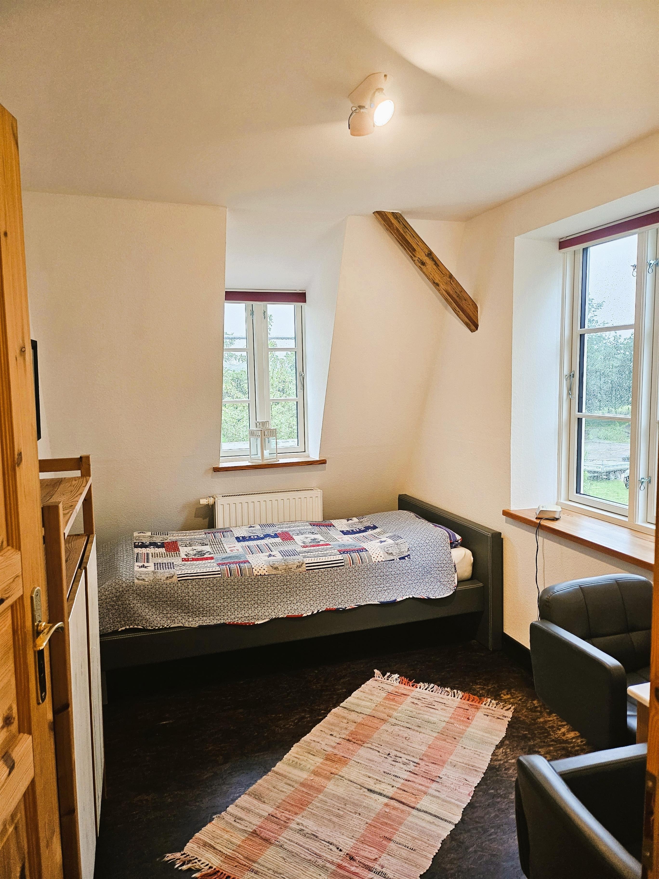 Beide Einzelzimmer sind sehr hell und freundlich eingerichtet. Sie befinden sich im 1. Stock des 2001 umgebauten Pferdestalls. Großzügige Bäder mit Dusche und WC sind zur alleinigen Benutzung auf dem Flur verfügbar. Ein Radio steht im Zimmer bereit.