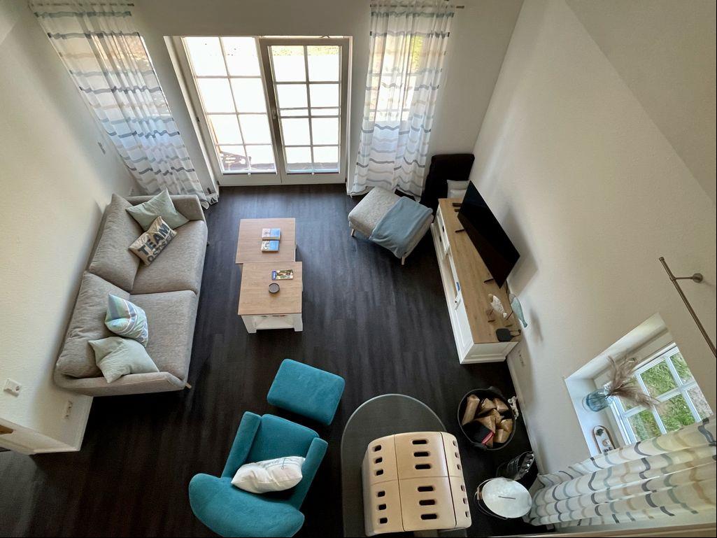 Allerdings 2 wichtige Hinweise: 1. Das Haupt-Badezimmer ist nur durch das Schlafzimmer erreichbar! kleines Gästebad im Flur. Und die Empore im Wohnzimmer ist offen - es besteht hier also eine Unfallgefahr wenn (kleine) Kinder hier spielen. Bitte beachten Sie diesen Hinweis bei Ihrer Buchung.