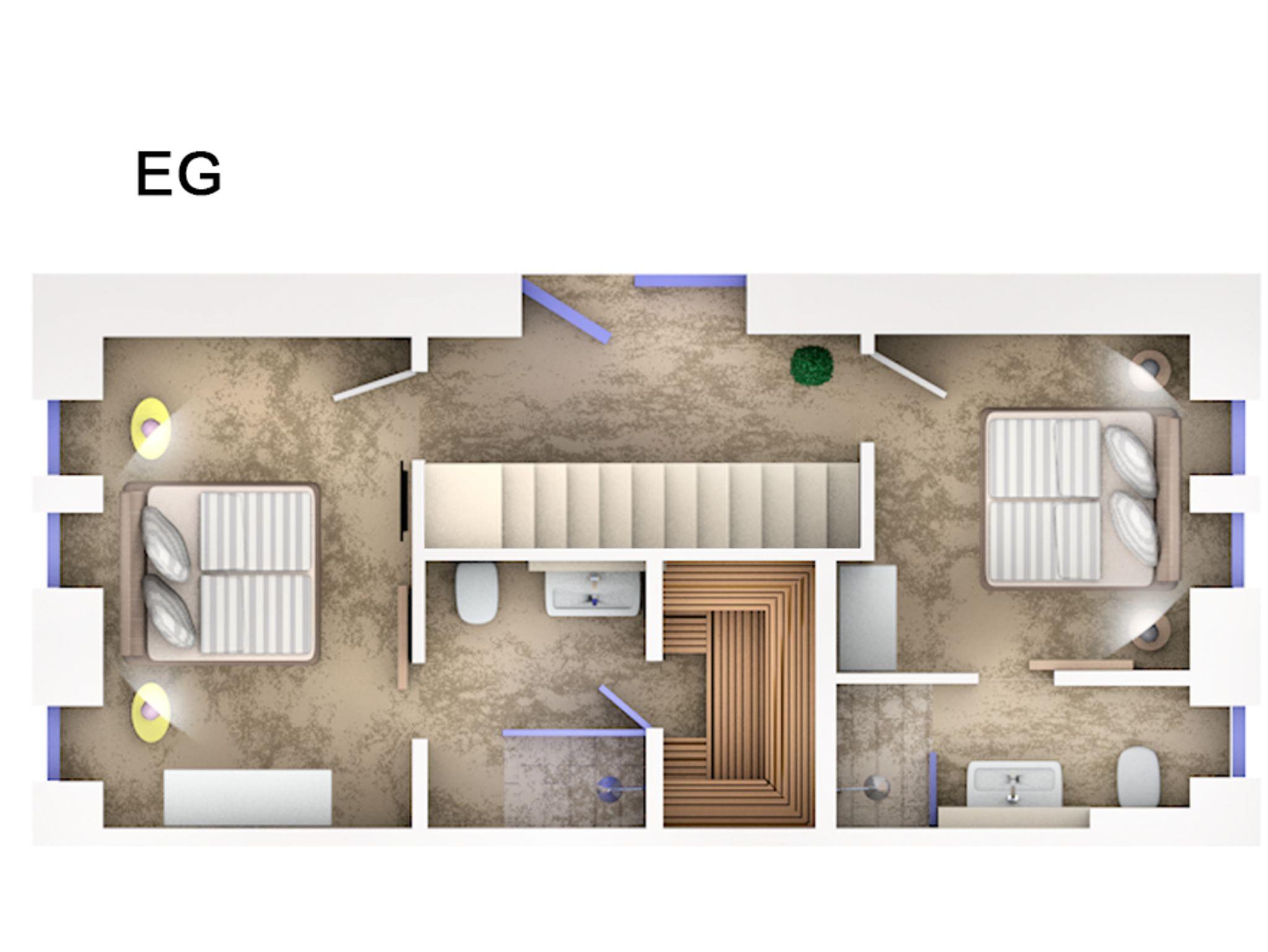 2 Bäder mit schwellenlosem Duscheinstieg und Rainshower-Kopfbrause, Sauna,