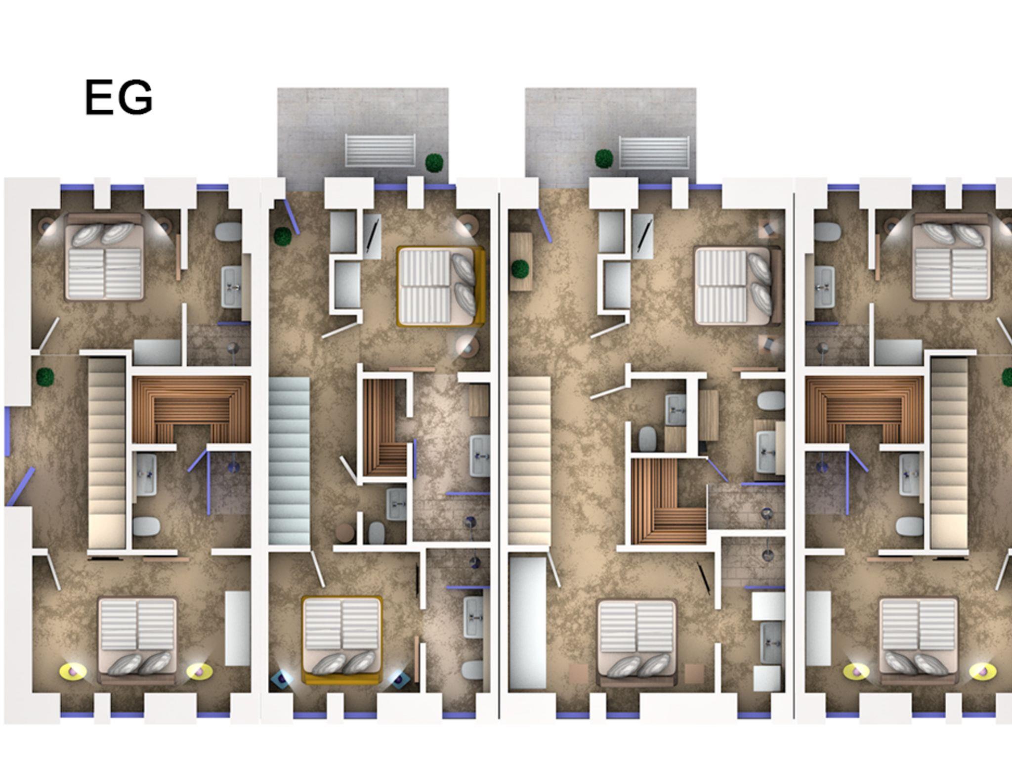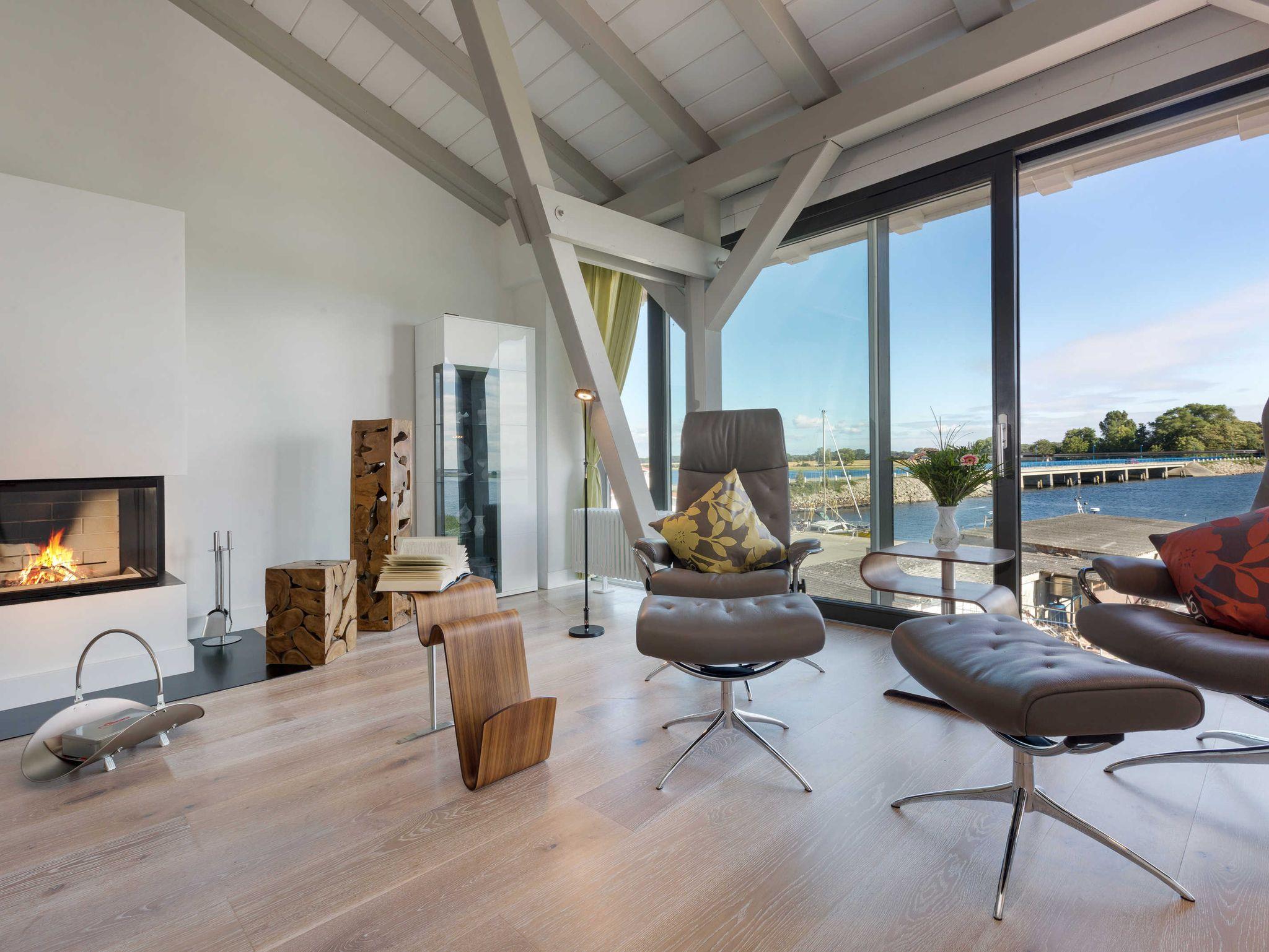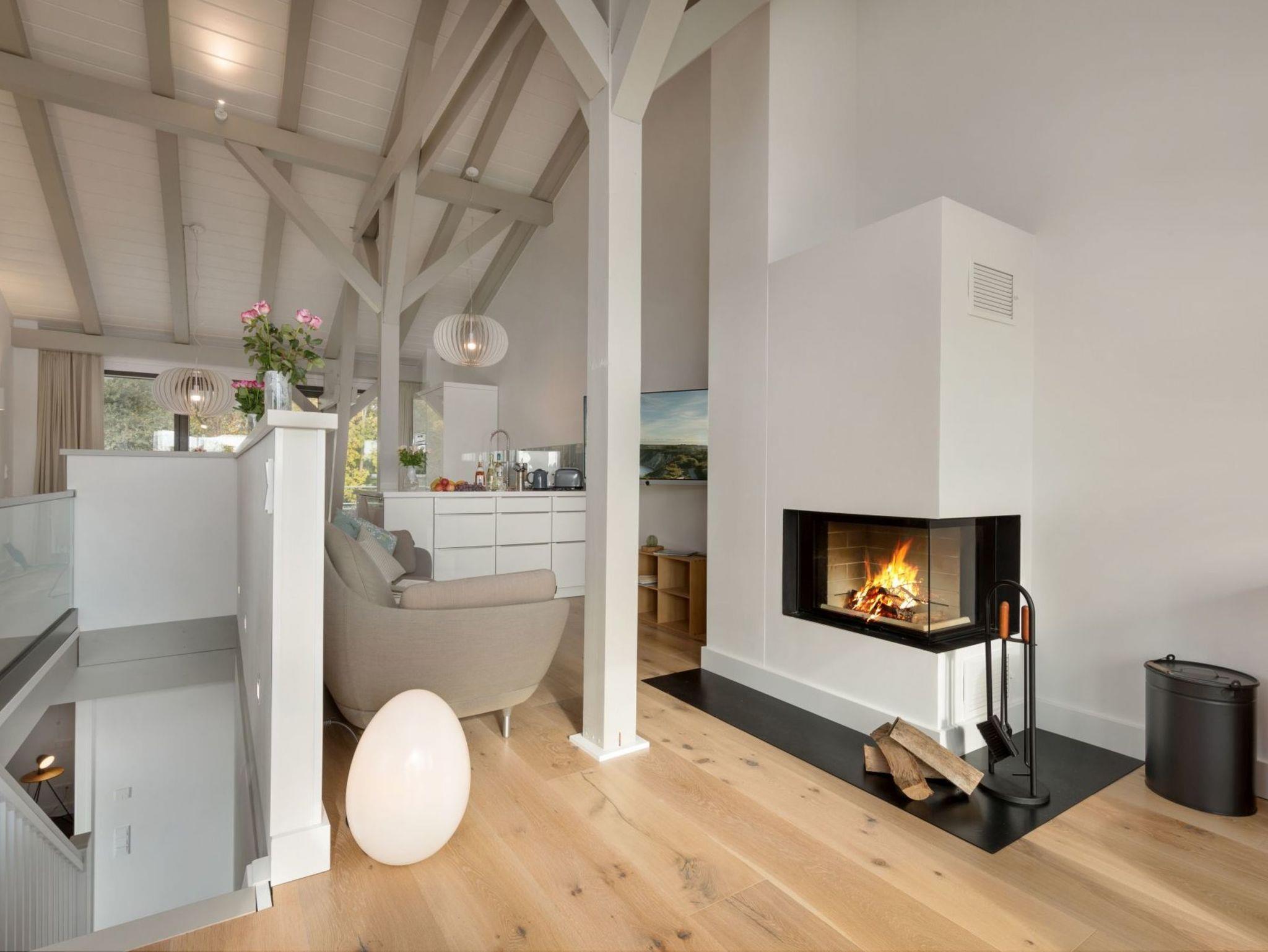 Doch auch auf die „inneren Werte“ kommt es an und diese vier Ferienhäuser mit 110 bis 130 Quadratmeter haben auf zwei Etagen eine ganze Menge zu bieten: Angefangen von den zwei Schlafzimmern und zwei Bädern mit bodentiefen Duschen bis hin zu einer Sauna und einem Kamin, womit der Aufenthalt auf Ummanz zu jeder Jahreszeit seinen Reiz bekommt. Im Sommer genießt man die sanfte Brise, im Winter macht man es sich abends kuschelig und gemütlich.