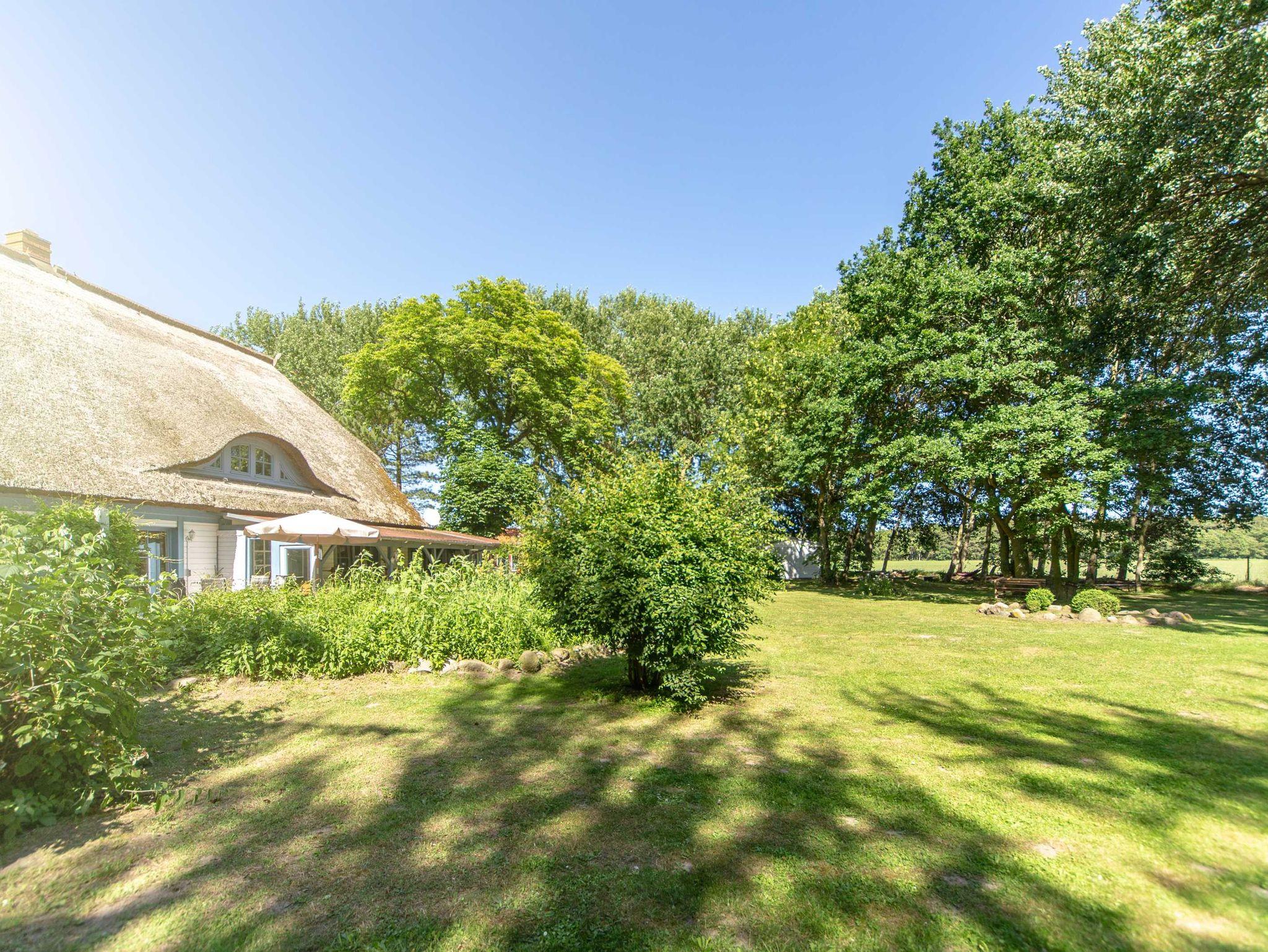Das Grundstück ist 2300m² groß, ist etwa 200m vom Wasser (Bodden) entfernt und bietet für Kinder viel Platz zum Spielen während sich die Eltern auf der Terrasse oder im Garten erholen können. Neben einer Grillmöglichkeit steht den Gästen auch eine eigene Parkflächen zur Verfügung.