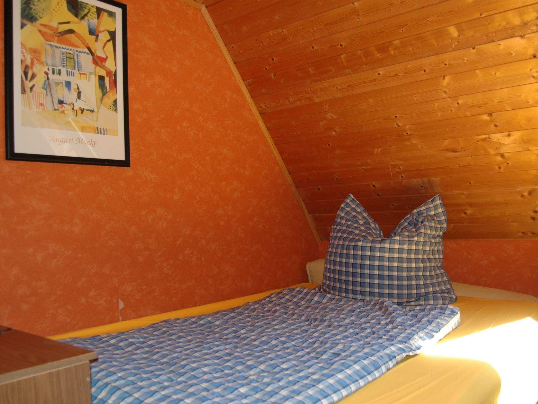 Im Erdgeschoß der liebevoll eingerichteten Ferienwohnung befindet sich der Wohnraum mit der Sitzgruppe und dem Esstisch, die Küche mit 4 Plattenherd und Backofen sowie das Duschbad. In der oberen Etage befinden sich zwei sep. Schlafzimmer eines mit Dpooelbett und das zweite mit einer Schlafcouch (140x200).