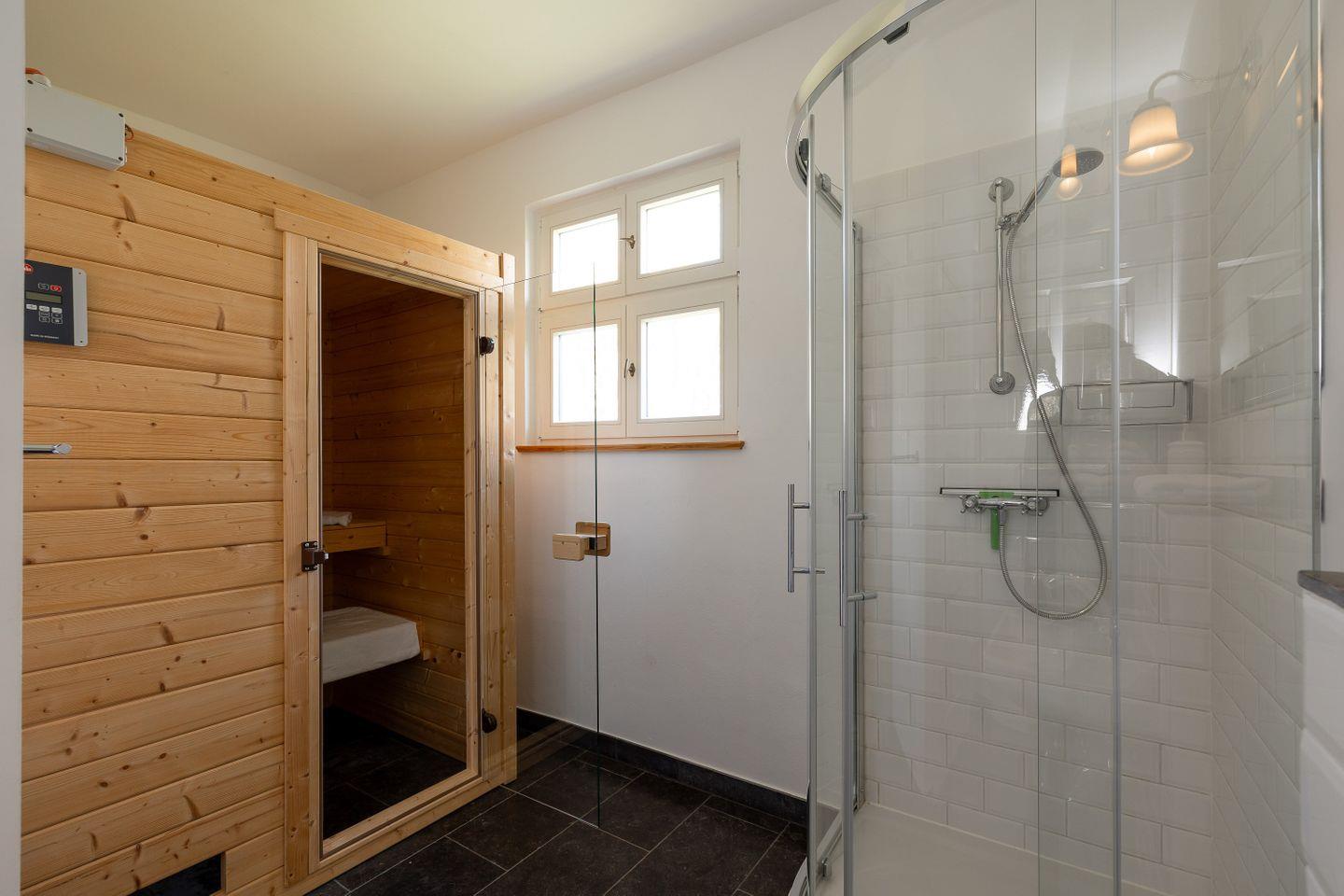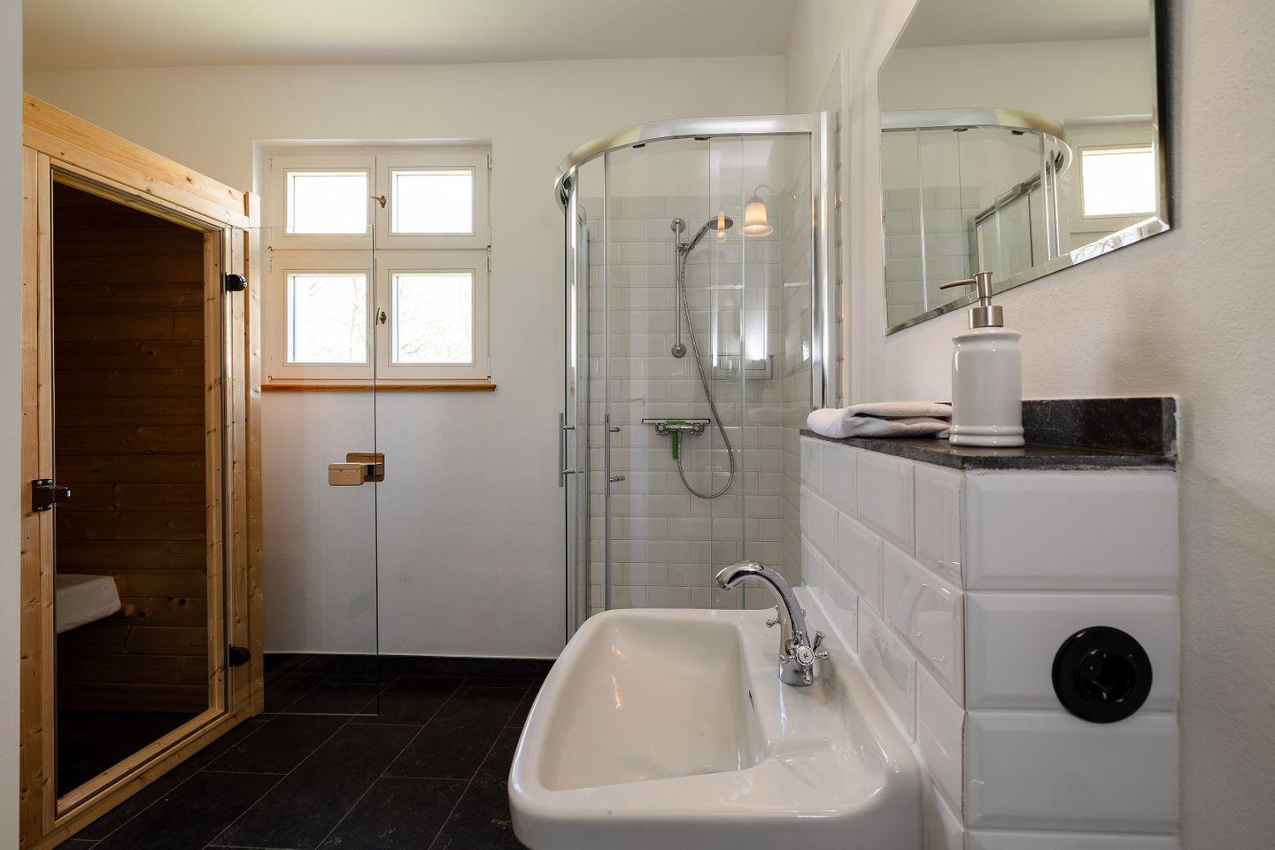 BAD // 2 sep. Badezimmer, eines mit Badewanne, WC und Waschtisch, zweites Badezimmer mit Dusche, Infrarotsauna, WC und Waschtisch, sep. Gäste-WC ++