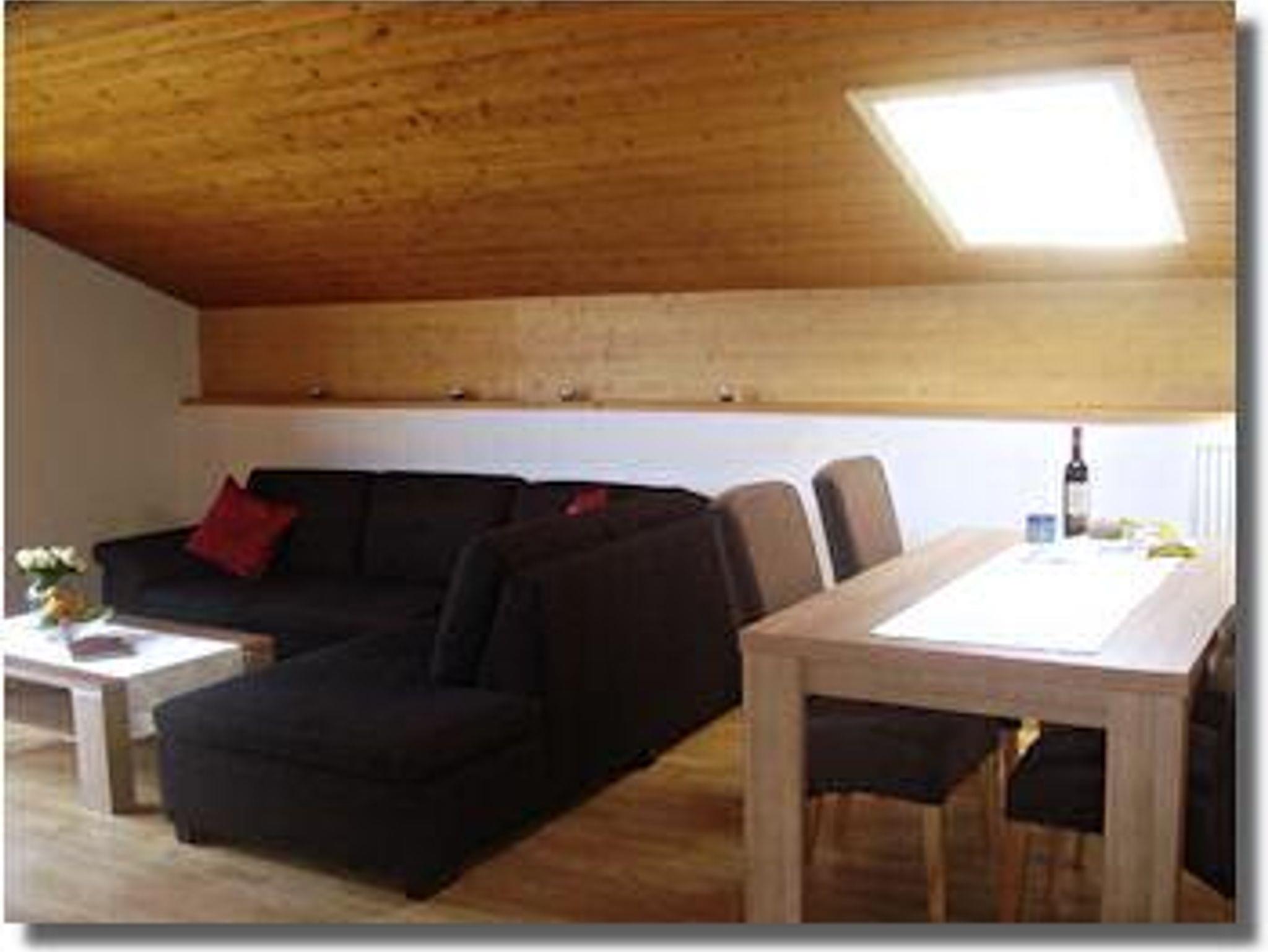 Die im Dachgeschoss liegende ca. 40 qm große FeWo mit separatem Eingang befindet sich in einer traumhaften, ruhigen Ortsrandlage. Sie ist komfortabel und gut ausgestattet, verfügt über ein großes Wohnzimmer mit Essecke, ein Schlafzimmer sowie eine mit allen gebräuchlichen Haushaltsgeräten ausgestattete Kochnische (Herd mit Ceranfeld, Mikrowelle). Vom großen Balkon aus können Sie den herrlichen Panoramablick genießen. Waschmaschinen- und Wäschetrocknerbenutzung auf Anfrage.