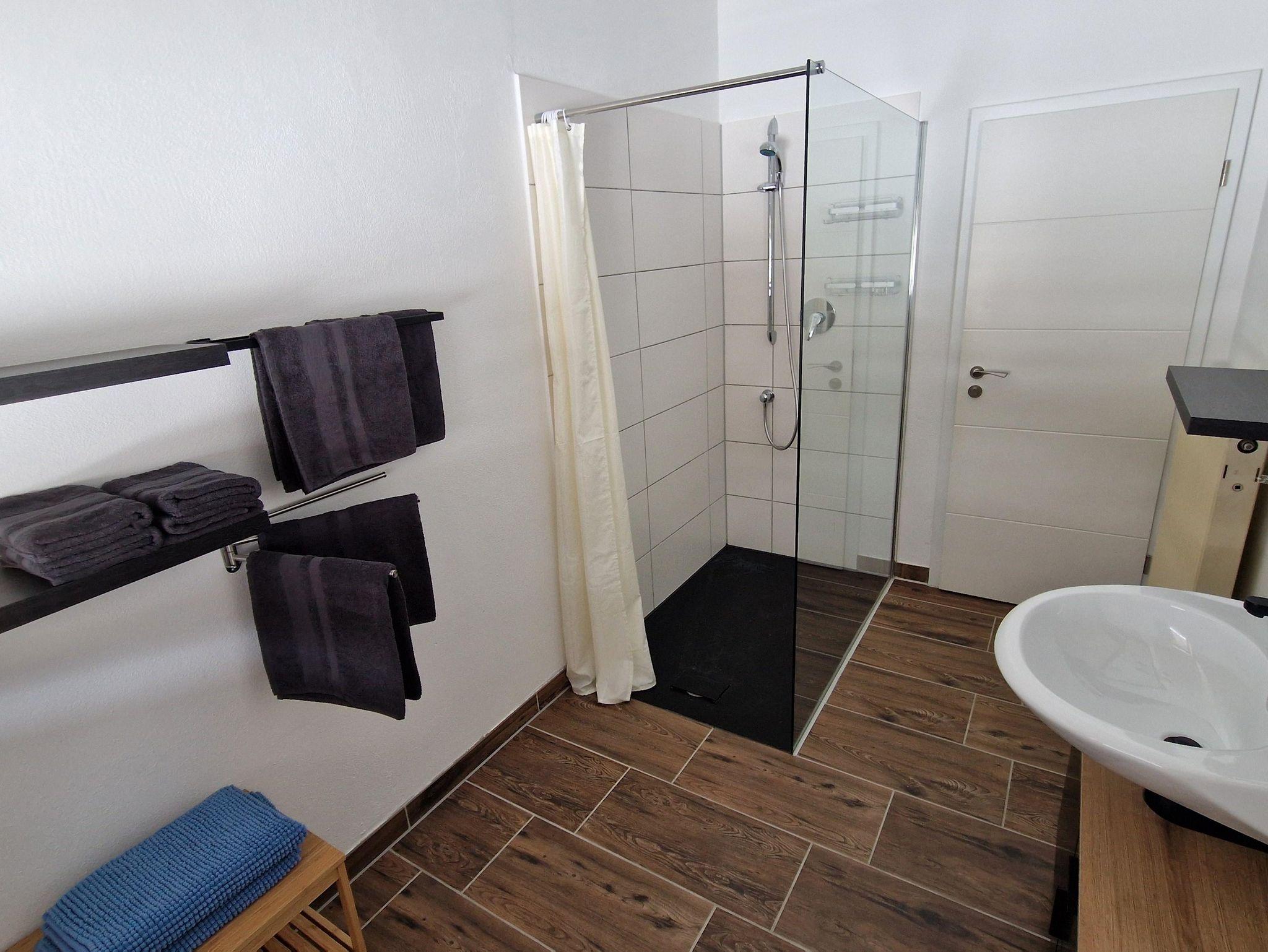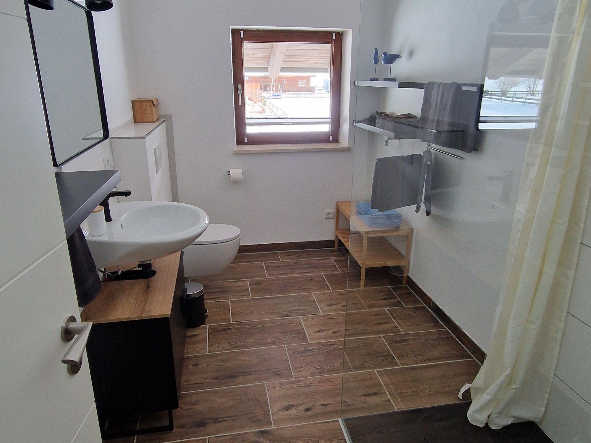 Das moderne Duschbad mit WC ist hell und funktional gestaltet, zusätzlich gibt es eine separate Gästetoilette. Eine Zentralheizung sorgt das ganze Jahr über für angenehme Temperaturen.