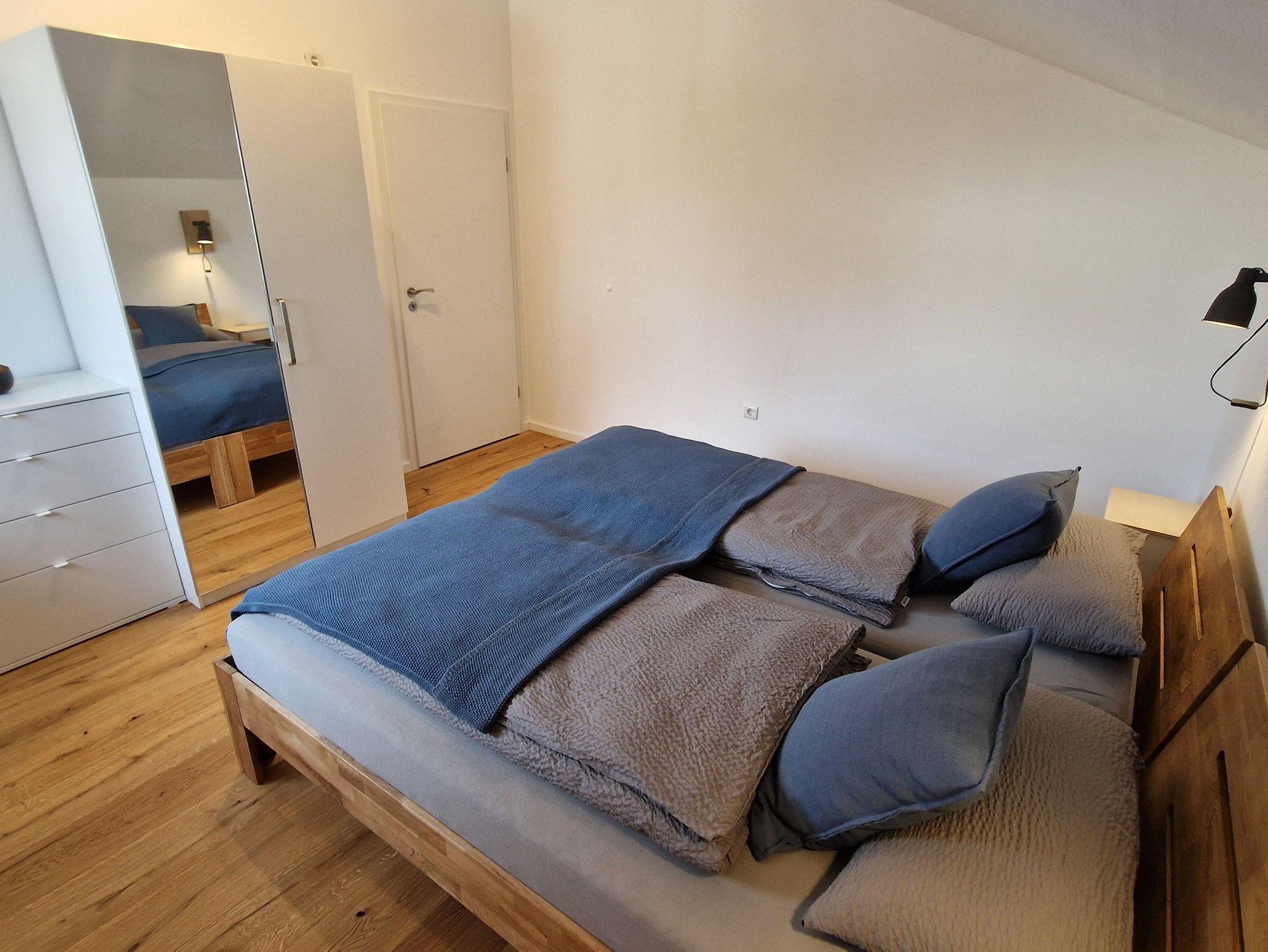 In allen Räumen sorgt hochwertiges Eichenparkett für eine natürliche, behagliche Atmosphäre. Die Wohnung verfügt über zwei Schlafzimmer – eines mit komfortablem Doppelbett, das andere mit zwei Einzelbetten – und bietet damit ausreichend Platz für Paare, Familien oder Freunde.