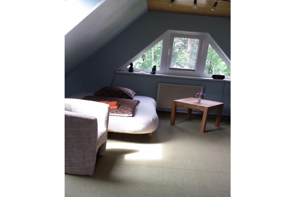 Stueetage: ((Fjernsyn), Køkken(elkedel, kaffemaskine, ovn, mikrobølgeovn, opvaskemaskine , køleskab, fryser, elektriske kogeplader), Stue/soveværelse(enkeltseng, dobbeltseng, CD-afspiller), badeværelse(toilet, bruser, håndvask)) , , Internetadgang, terrasse(grill, havemøbler, solstole), have(Grill center, grill, havemøbler, solstole), loungemøbler(Fjernsyn), tørreskab