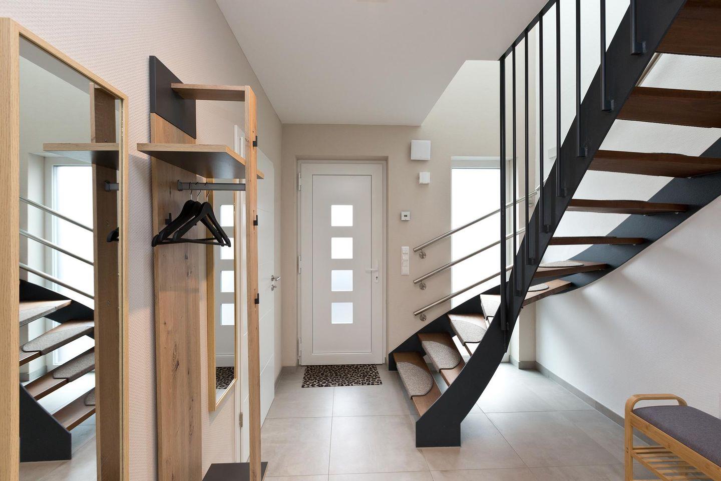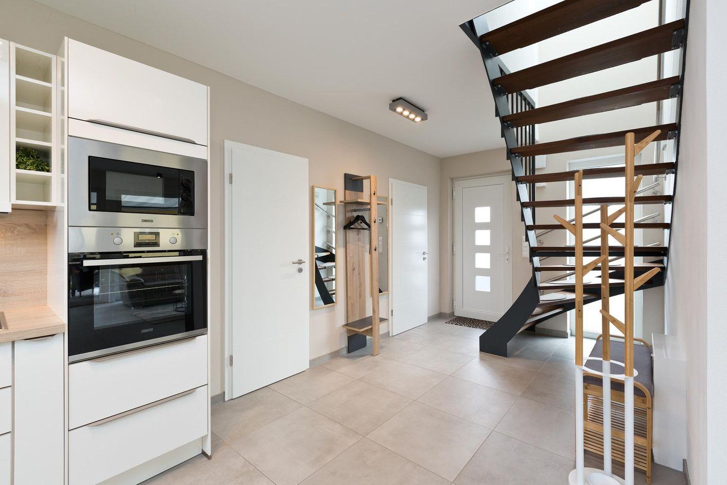 Große bodentiefe Fensterelemente öffnen den kompletten Wohnbereich in den Garten. Das Haus bietet neben der Fußbodenheizung auch eine Kühlung für alle Räume an. Zusätzlich sind alle Räume mit eine integrierter Wohnraumbelüftung versehen die ein fantastisches Raumklima erzeugt.