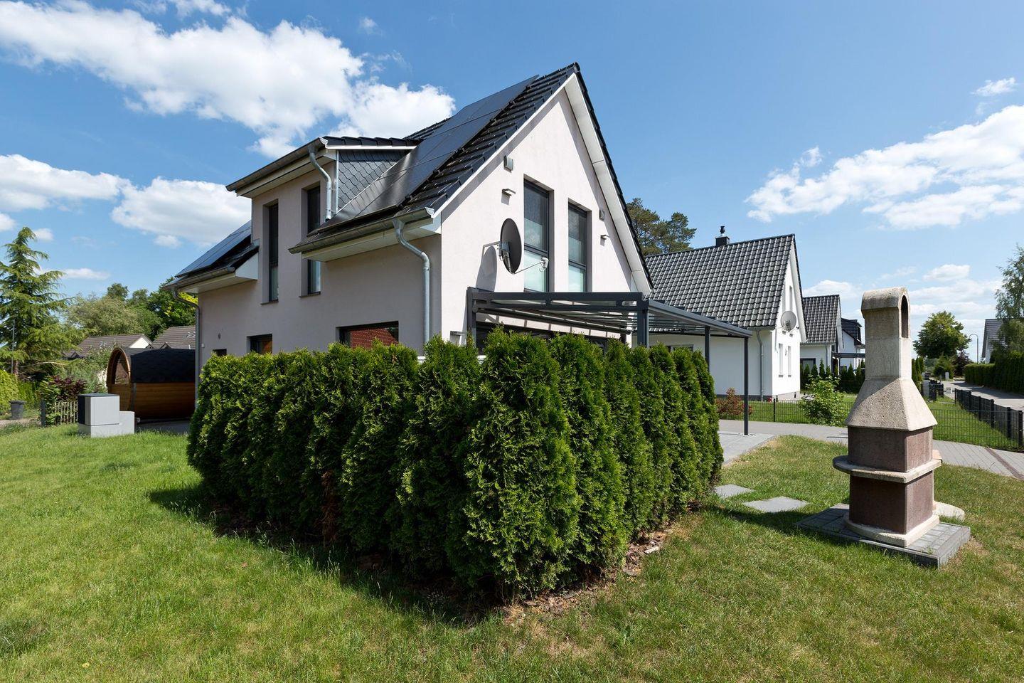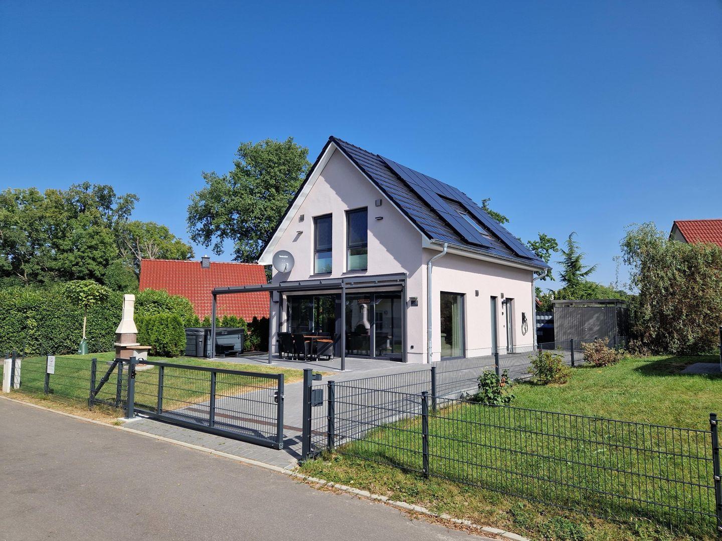 Modern und elegant ist dieses energieeffiziente Ferienhaus, mit 98 qm Wohnfläche und 416 qm Grundstücksfläche. Eine mit Glas und Sonnenschutz überdachte Terrasse von 20qm machen das Haus zu einem schicken Unikat. Ein schönes ruhig gelegenes Haus unmittelbar am Wald, See und Golfplatz.