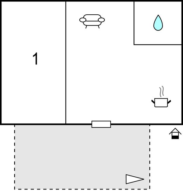 Opholdsstue/køkken - 1 Soveplads. (Sofa, madras eller lignende).