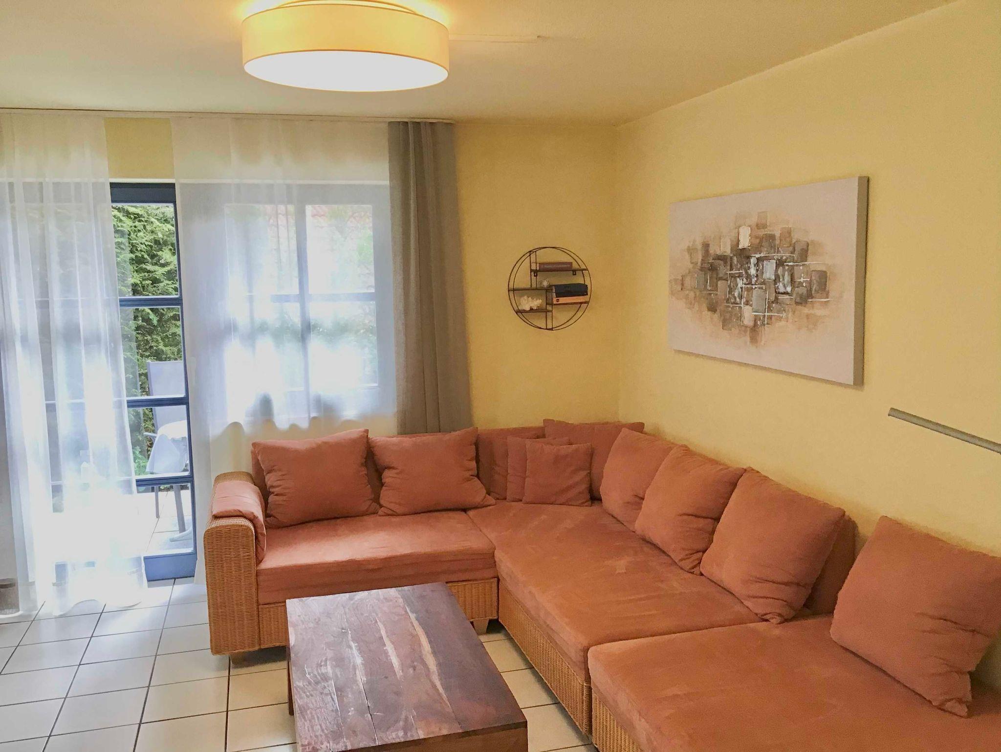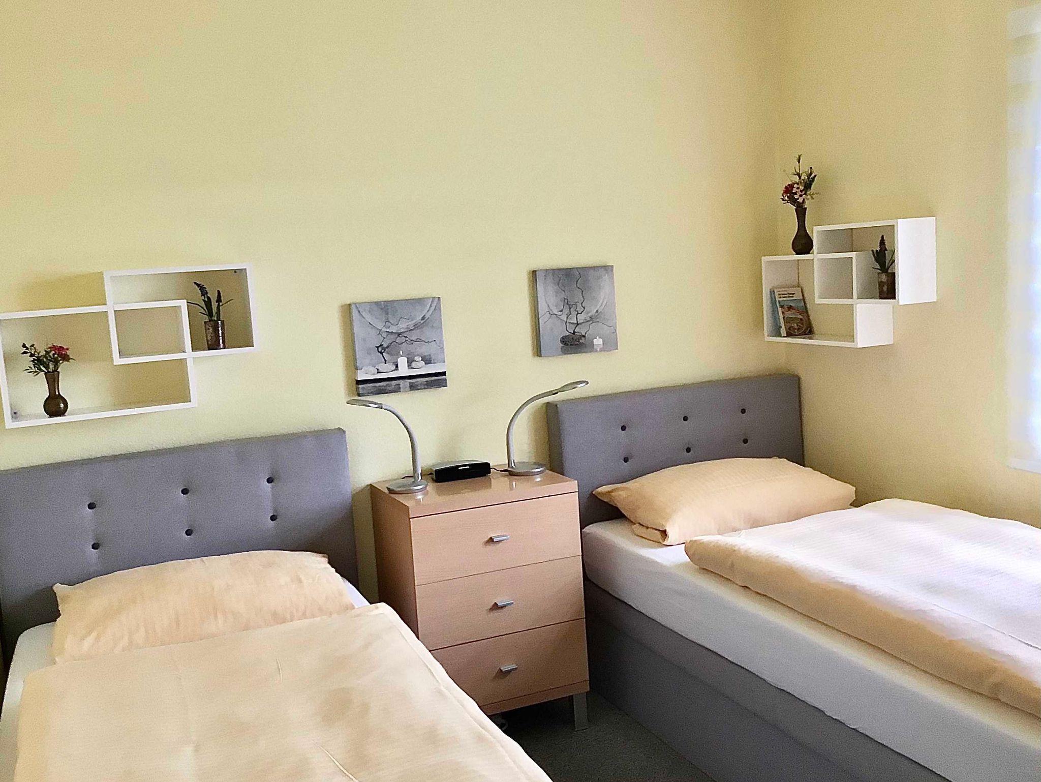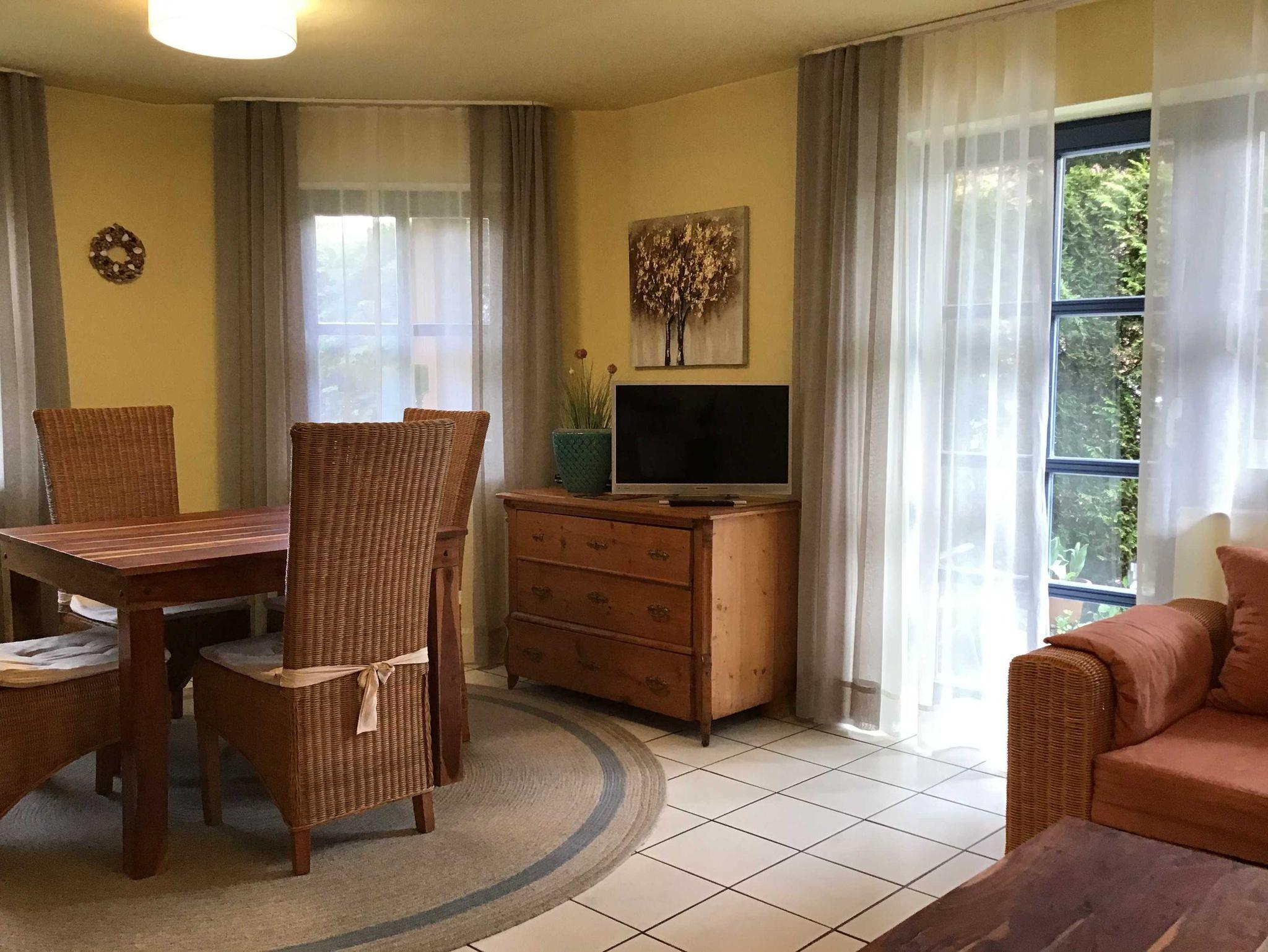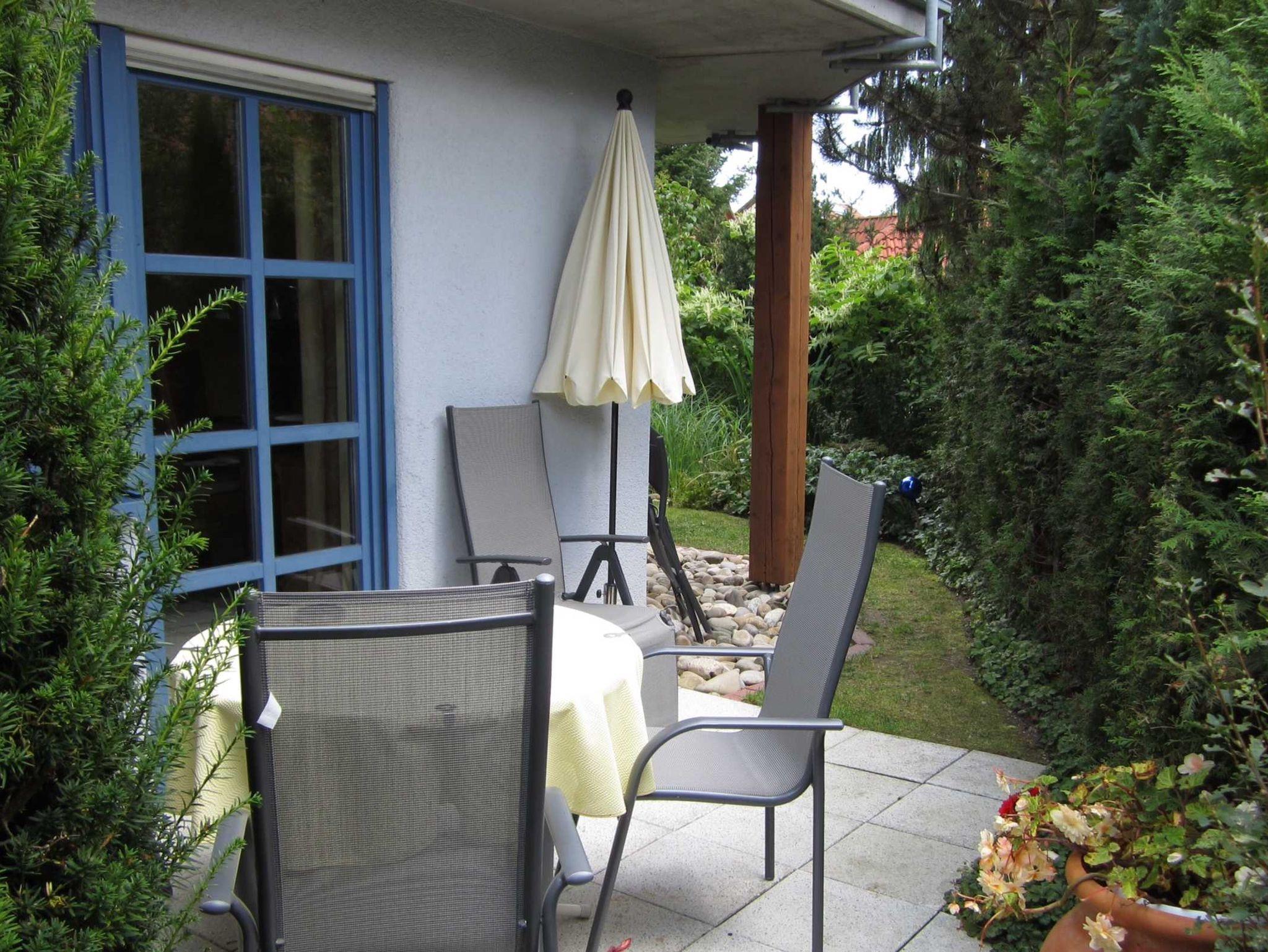 Diese Ferienwohnung im Parterre mit Terasse verfügt auf 69 m² über 2 Schlafräume (4 Betten) sowie eine Schlafcouch im Wohnbereich, Dusche, WC, Fön, Flachbild-TV, Stereoanlage/CD, DVD und WLAN. Die separate Küche ist sehr gut ausgestattet mit Kühlschrank,Geschirrspüler, Cerankochfeld, Backofen, Mikro, Kaffeemaschine, Toster. Dusche/WC mit Waschmaschine. Die Wohnung hat Südausrichtung und ist für bis zu 5 Personen geeignet.